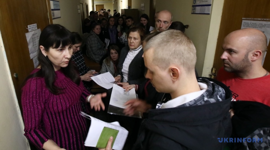 У відділі ведення Держреєстру виборців Печерської РДА десятки людей також стоять у чергах.