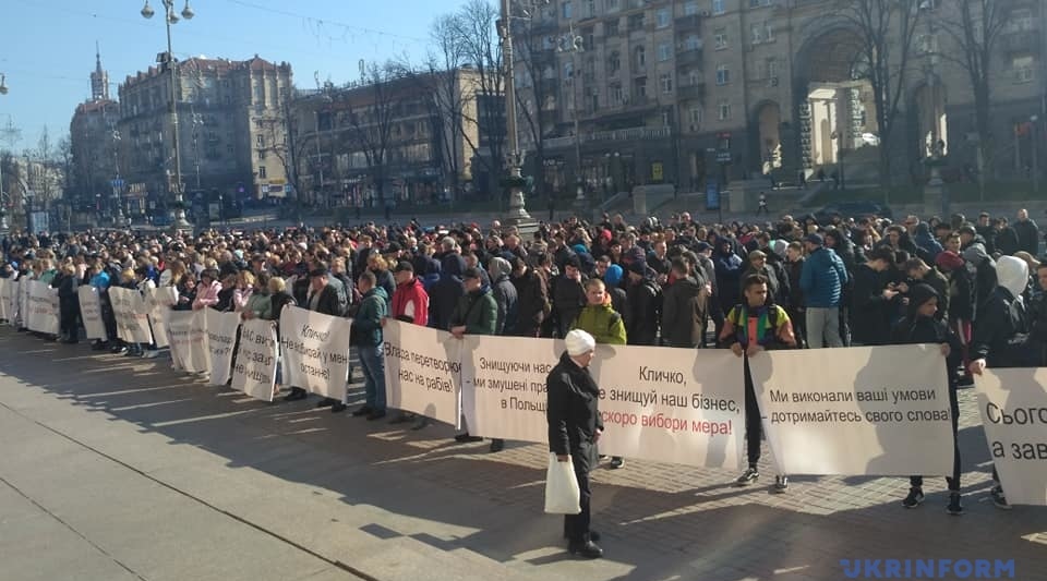 Як повідомляв Укрінформ, 14 березня під КМДА проходив мітинг власників торгових точок, які вимагали не затверджувати нові правила розміщення МАФів. Київрада на своєму засіданні проголосувала за перенесення розгляду питання стосовно МАФів на наступне пленарне засідання.