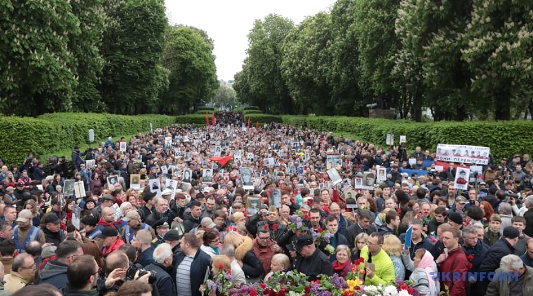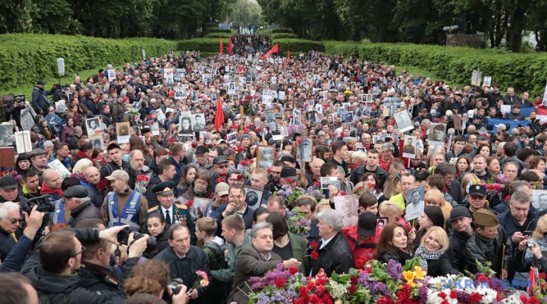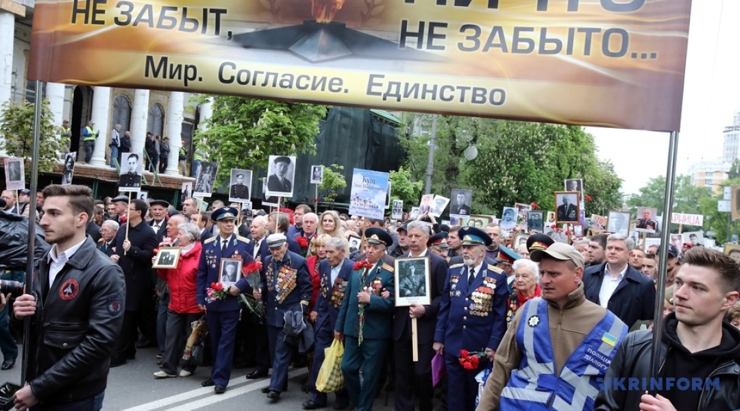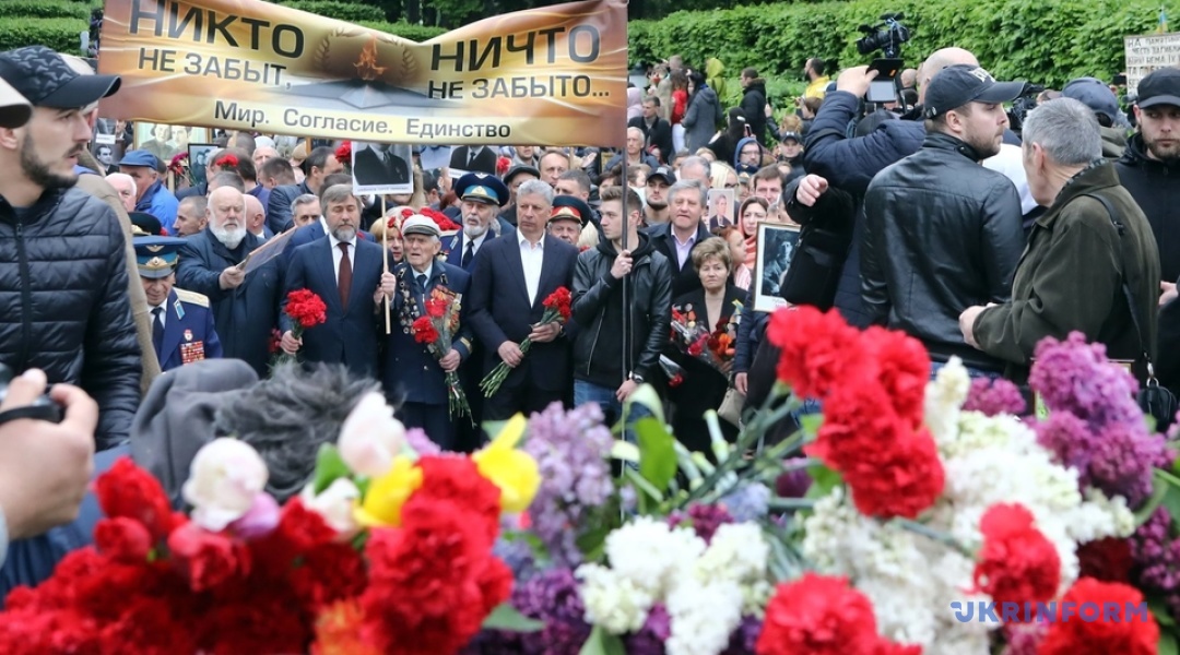 Як повідомляв Укрінформ, у Києві 9 травня відбувається одночасно кілька акцій. Поліція Києва докладає максимум зусиль, аби масові заходи 9 травня пройшли безпечно, заявив начальник ГУ НП м. Києва Андрій Крищенко.