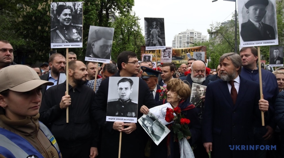 Одній із учасників ходи "Безсмертного полку" зробили зауваження з приводу пілотки із зіркою, нагадавши, що це - "заборонена законом символіка". Та різко відповіла: "це ти заборонений законом". В іншої жінки забрали "георгіївську стрічку".