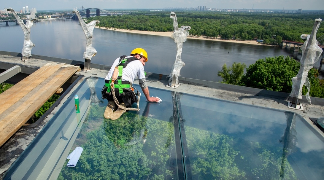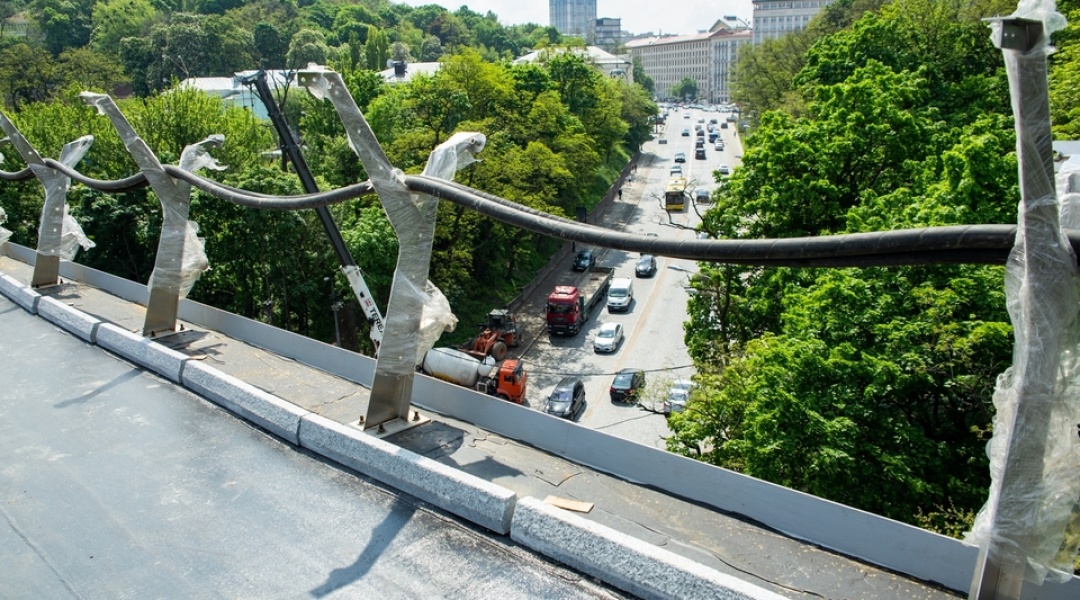 На пішохідному мосту, що з’єднає Володимирську гірку з Аркою дружби народів, встановлюють скляну підлогу.
