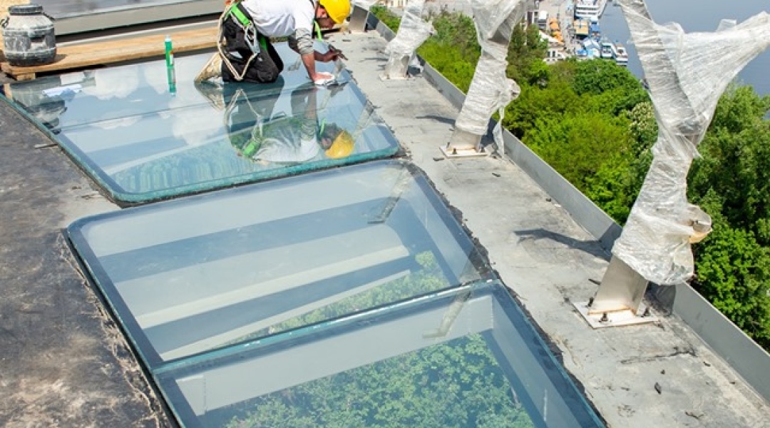 На пішохідному мосту біля Арки дружби народів встановлюють скляну підлогу