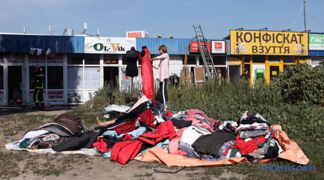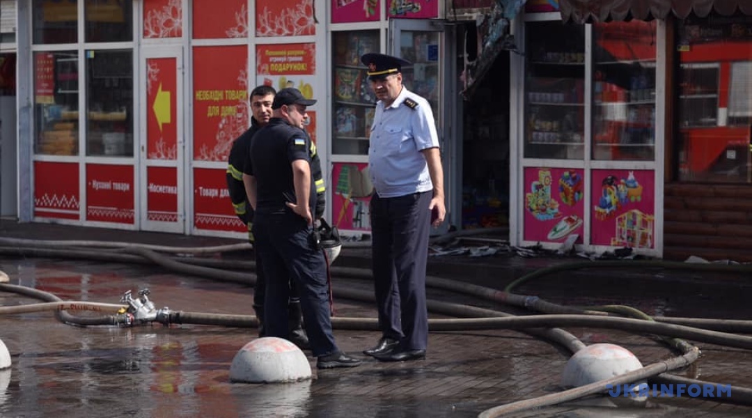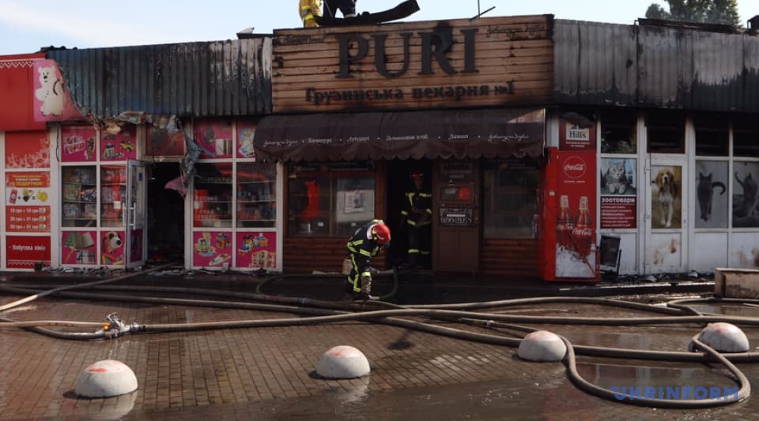 Прибувши до місця виклику, вогнеборці встановили, що горить покрівля над 4 павільйонами критого ринку на площі 70 кв. м і вогонь швидко поширюється”, - йдеться у повідомленні.