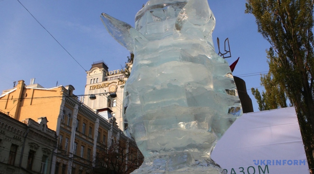 У Києві встановили льодову скульптуру / Фото: Інна Бородаєва, Укрінформ