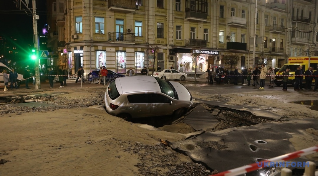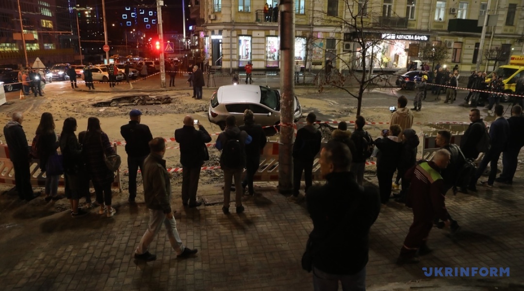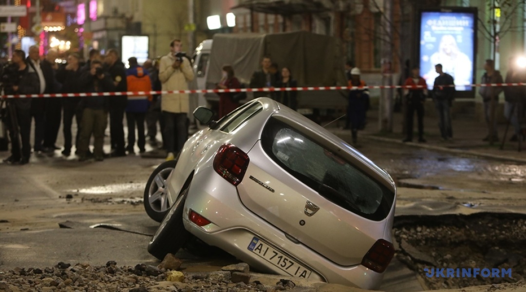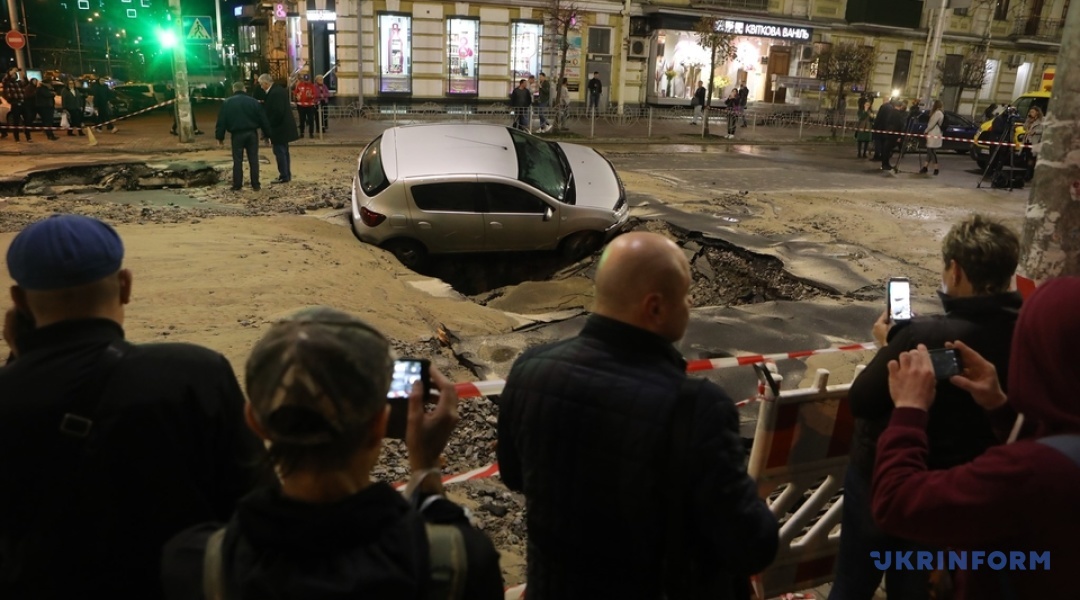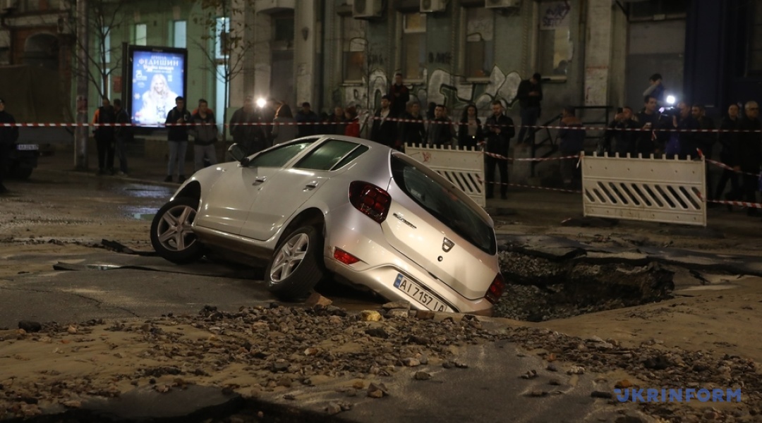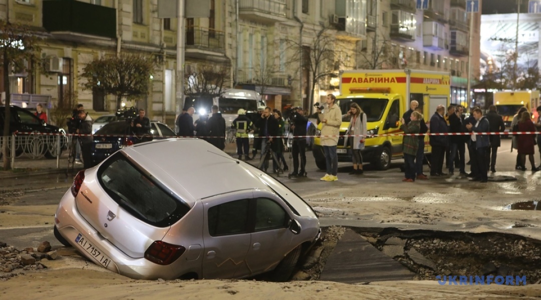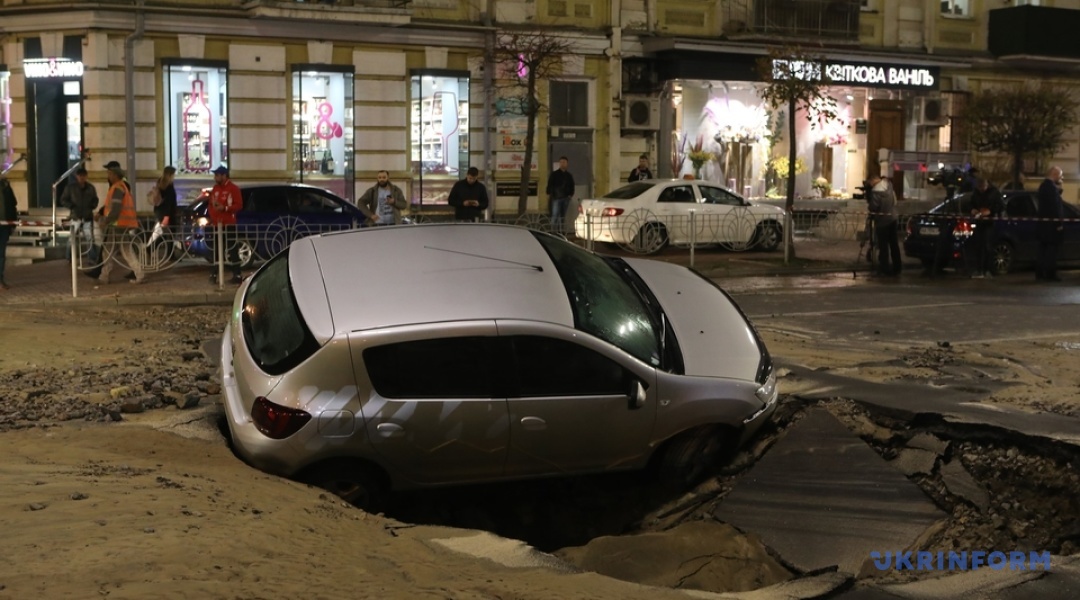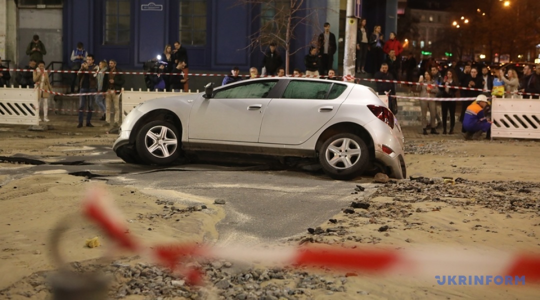 Через тиск гарячої води там обвалився асфальт. Раніше повідомлялося, що в яму провалився один автомобіль.