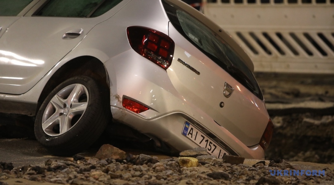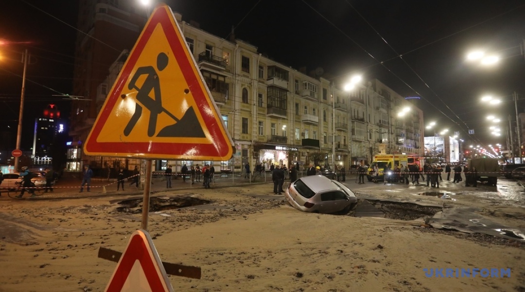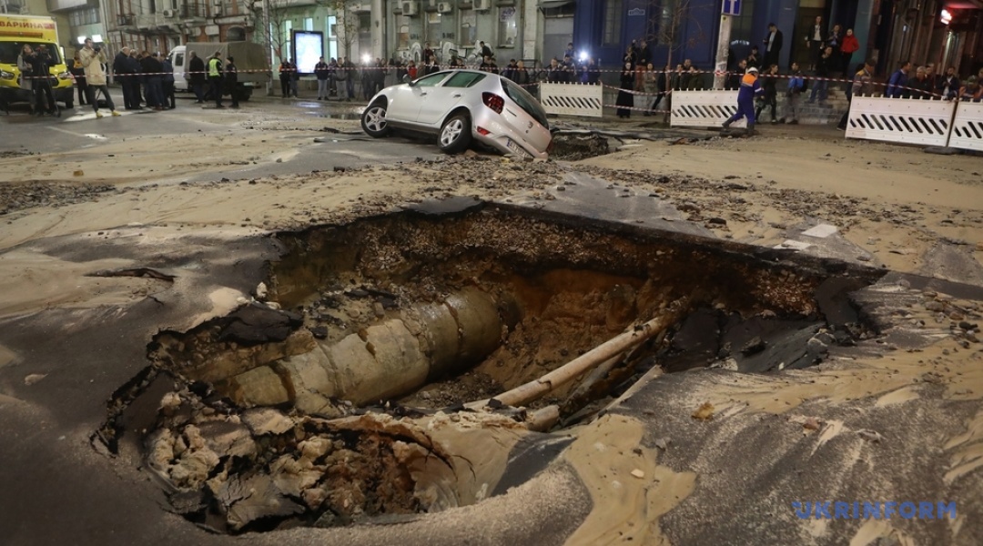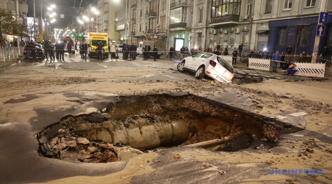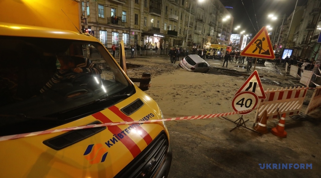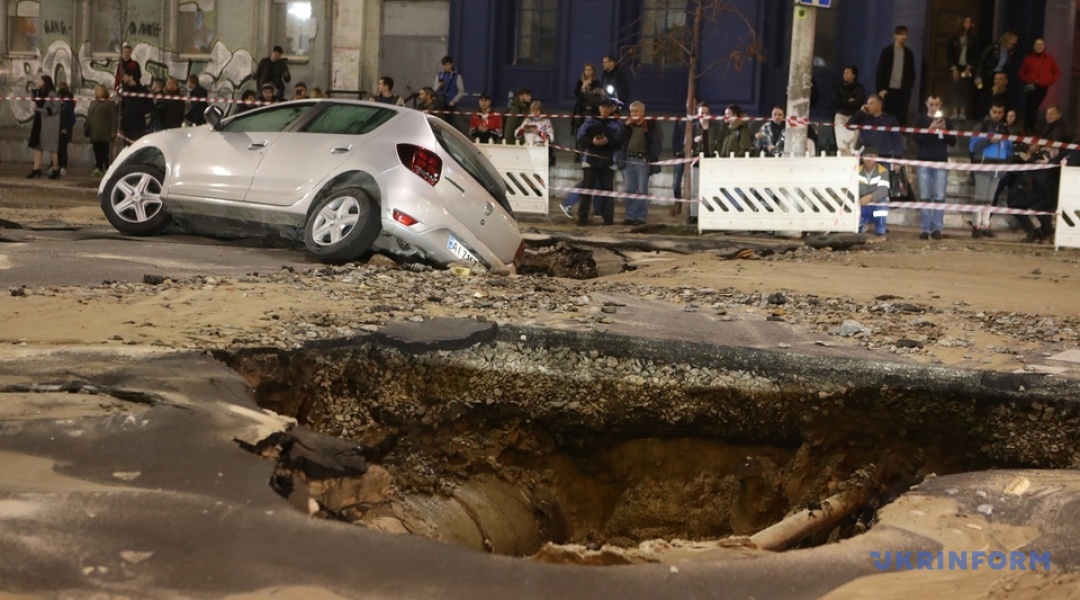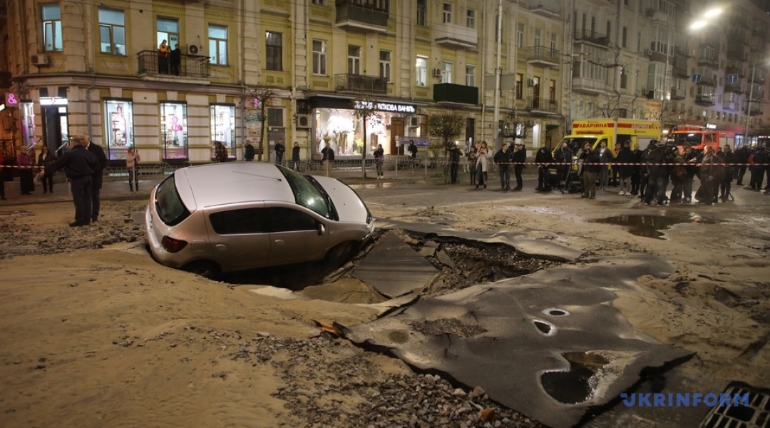 Через тиск гарячої води там обвалився асфальт. Раніше повідомлялося, що в яму провалився один автомобіль.