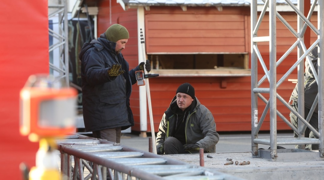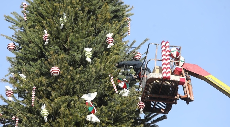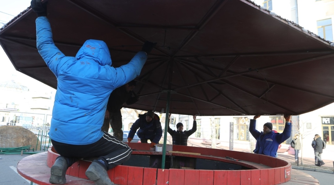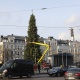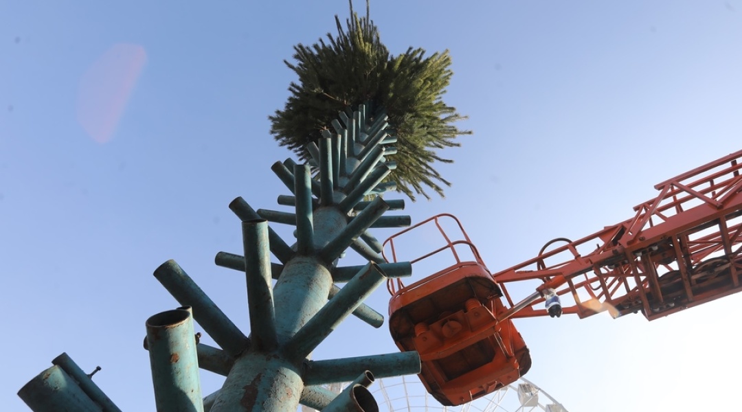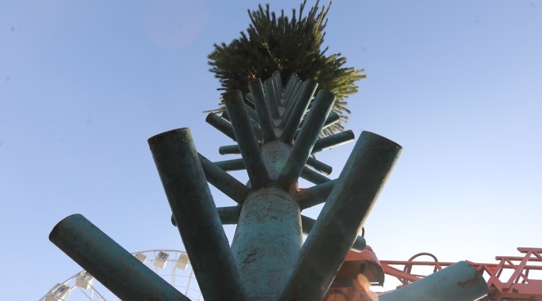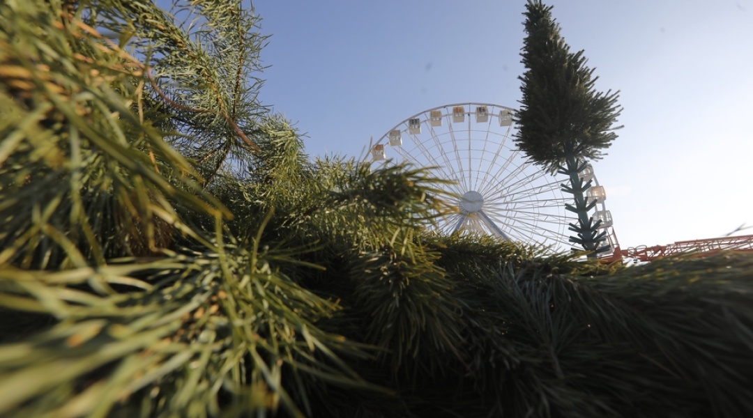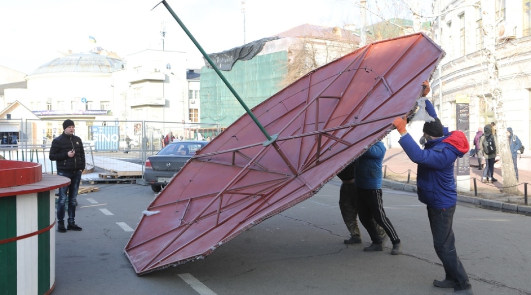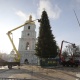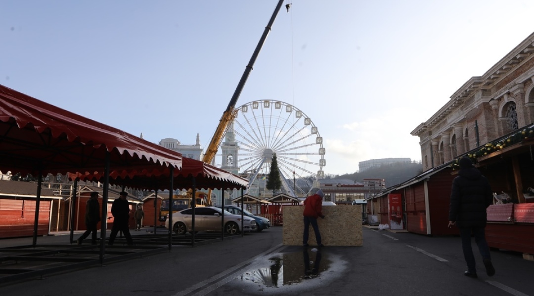 На Контрактовій площі почали встановлювати новорічну ялинку