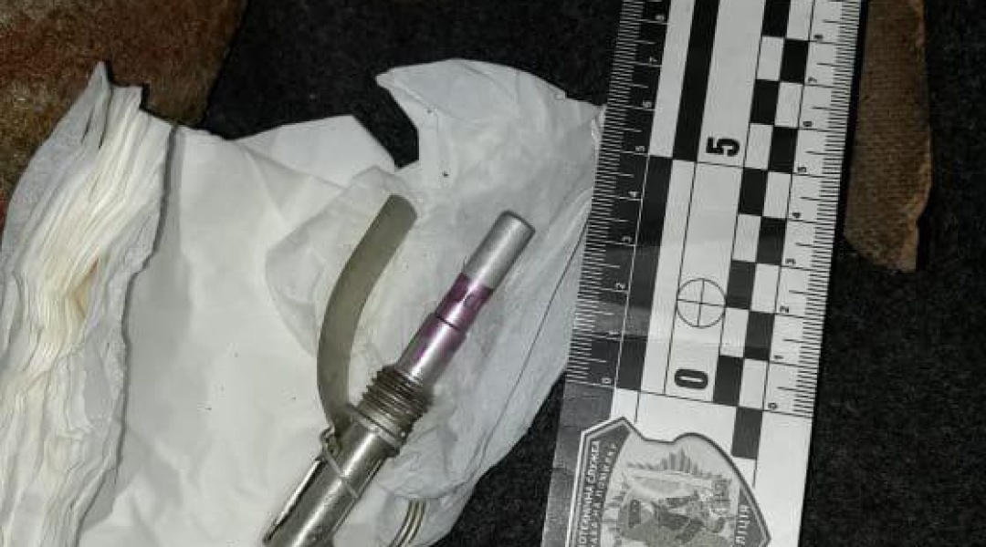 Під час огляду у зловмисників вилучили молоток, ніж, два шприци з речовиною, схожою на наркотичну, і бойову гранату. Вирішується питання щодо оголошення їм підозри у вчиненні злочину.
