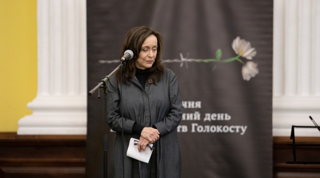 "Сьогодні ми вшановуємо та згадуємо загиблих, дякуємо праведникам, які рятували євреїв під час війни, розповідаємо молоді про ті часи. Наша організація домоглася того, аби напередодні цієї трагічної дати у школах України проходили уроки Голокосту, щоб діти це знати, бо це дуже важливо для унеможливлення повторення цієї трагедії", - зазначила президент Єврейського форуму України Роксана Гамарник.