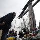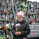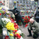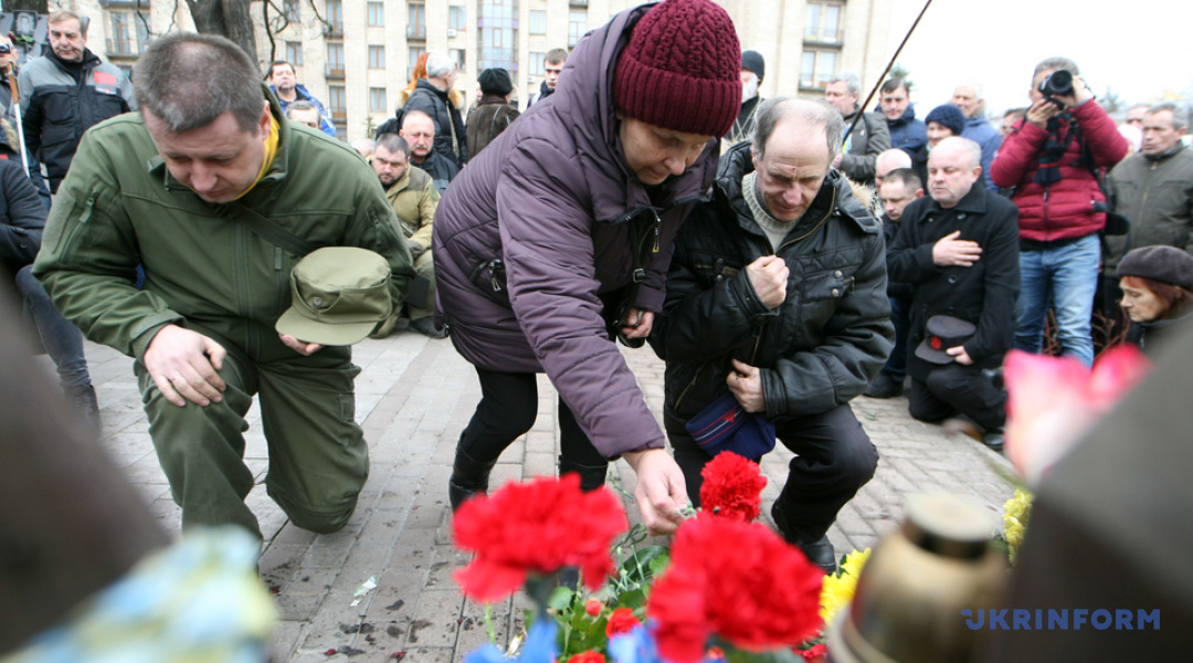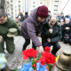 На початку акції родичі загиблих поклали квіти до пам'ятного знаку на честь Героїв Небесної Сотні на вулиці Грушевського.
