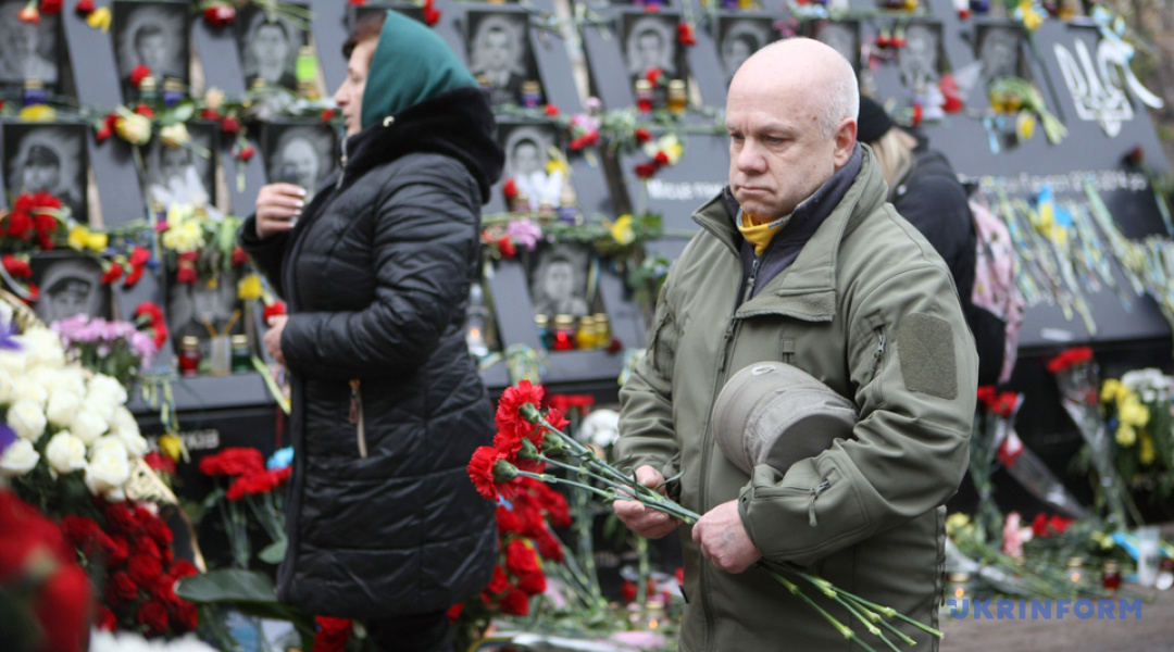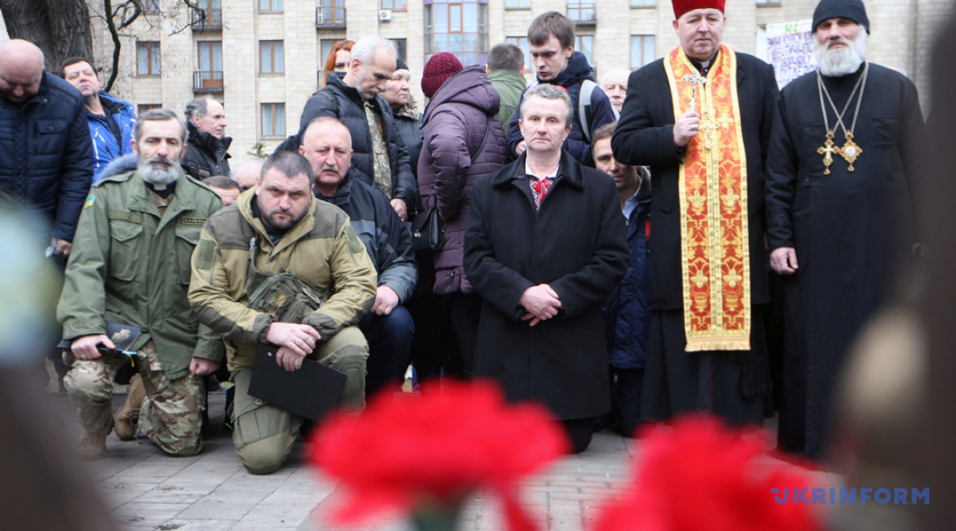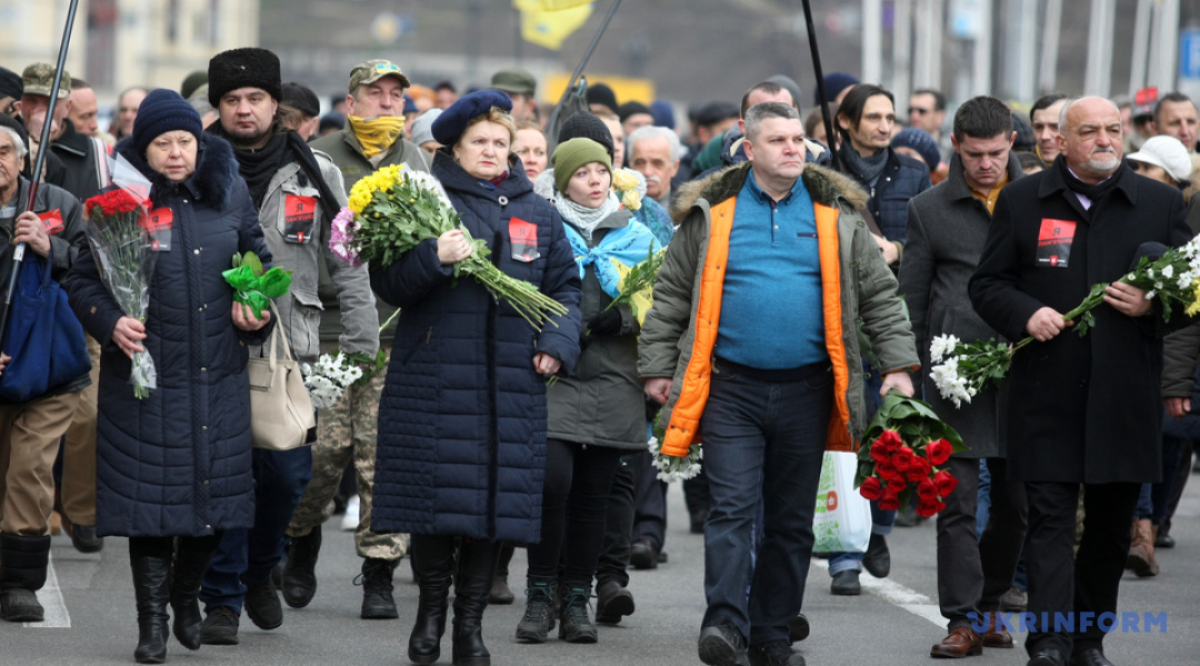 "Сьогоднішній захід - це зібрання учасників Революції Гідності, які, перш за все, хотіли б вшанувати Героїв Небесної Сотні, українських військових, загиблих у війні з Російською Федерацією на Сході, і які хотіли б нагадати владі про те, що вимоги Революції Гідності досі не виконані", - сказав один із організаторів Ходи гідності Микола Марченко.