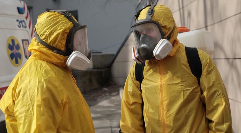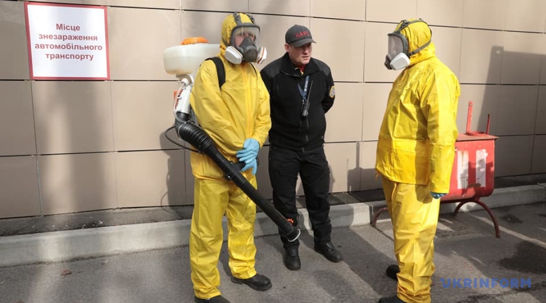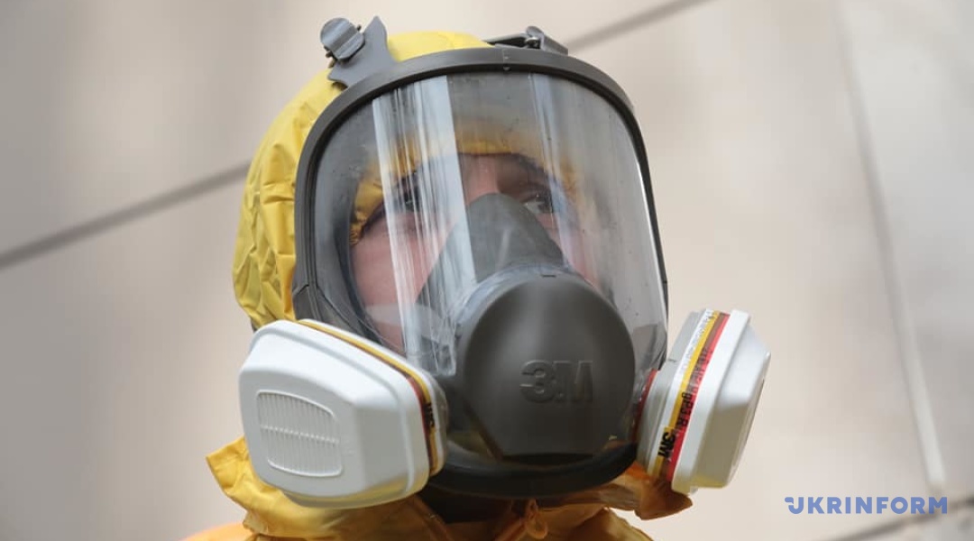 Навчання в Олександрівській лікарні Києва на випадок виявлення коронавірусу/ Фото: Геннадій Мінченко