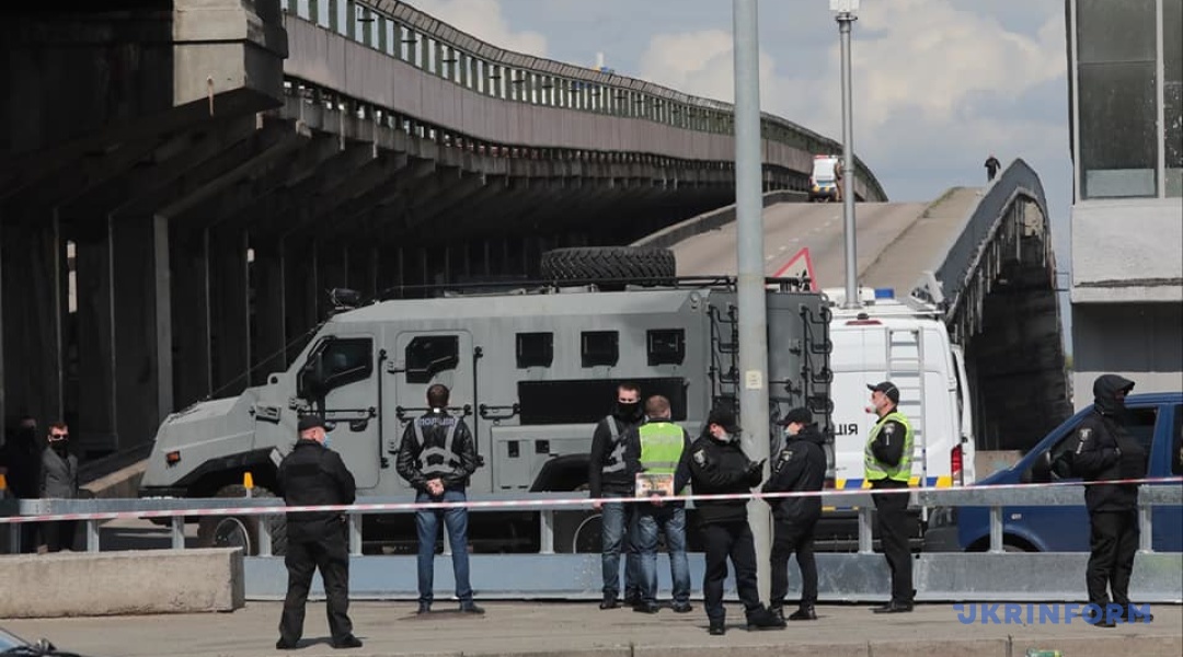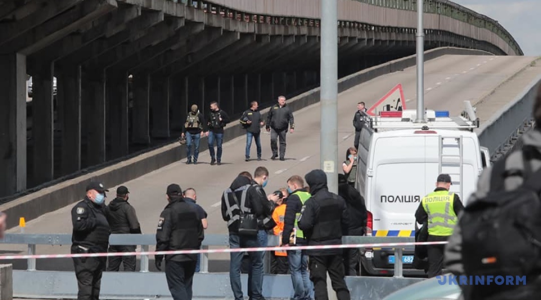 Раніше КМДА повідомила, що на мосту Метро стоїть чоловік з пакетом і погрожує підірвати споруду.