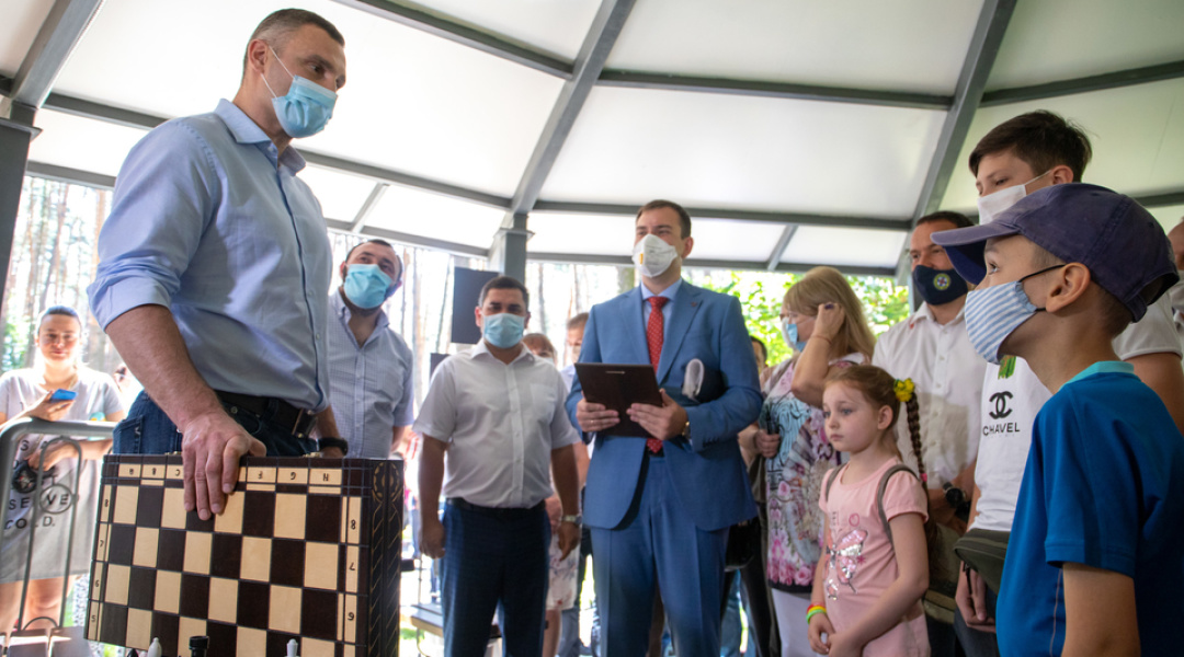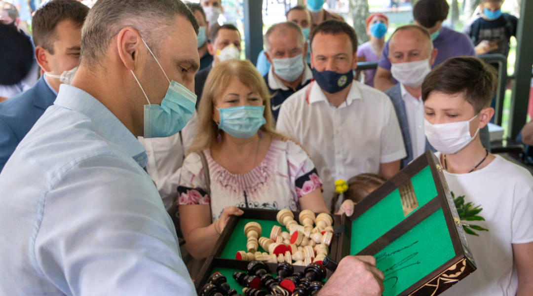 «На вході до парку облаштували фонтан, який увечері підсвічується. Дітлахи не гають часу і вже купаються в ньому! Також у «Совках» є гарна альтанка зі столами для гри в шахи. Я мав нагоду привітати переможця дитячого турніру із шахів у Святошинському районі. Вручив хлопцеві набір для гри в шахи та сертифікат на гру з чемпіоном світу з шахів, моїм давнім другом Володимиром Крамником. Володимир із радістю погодився зіграти зі школярем, коли наступного разу відвідає Київ», – сказав Кличко.