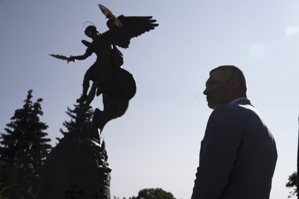 «Фігура Архангела Михаїла – елемент герба нашого міста. Скульптури Архистратига прикрашали та охороняли Київ і у середньовіччя, і в більш пізні часи. У 1997-98 роках, коли відновлювали і реставрували Михайлівський Золотоверхий собор, ми з братом, разом з іншими меценатами, фінансували створення барельєфа Архангела, що встановили над Михайлівським собором між його куполами. І тоді я мріяв, що скульптура Архангела обов’язково має бути на Володимирській гірці. Біля собору», - розповів Кличко.