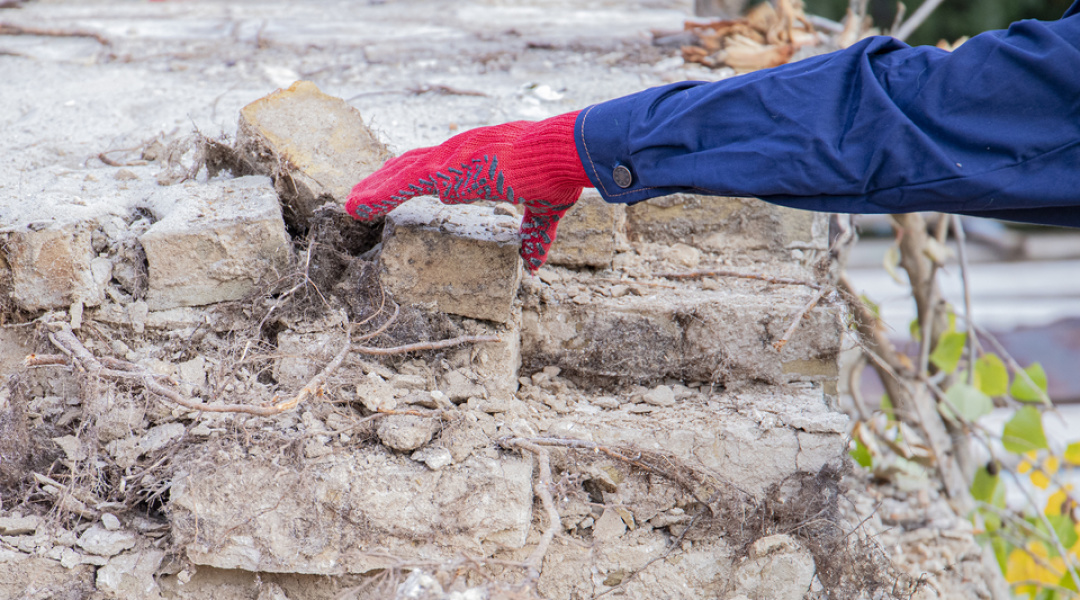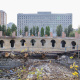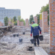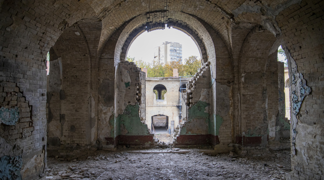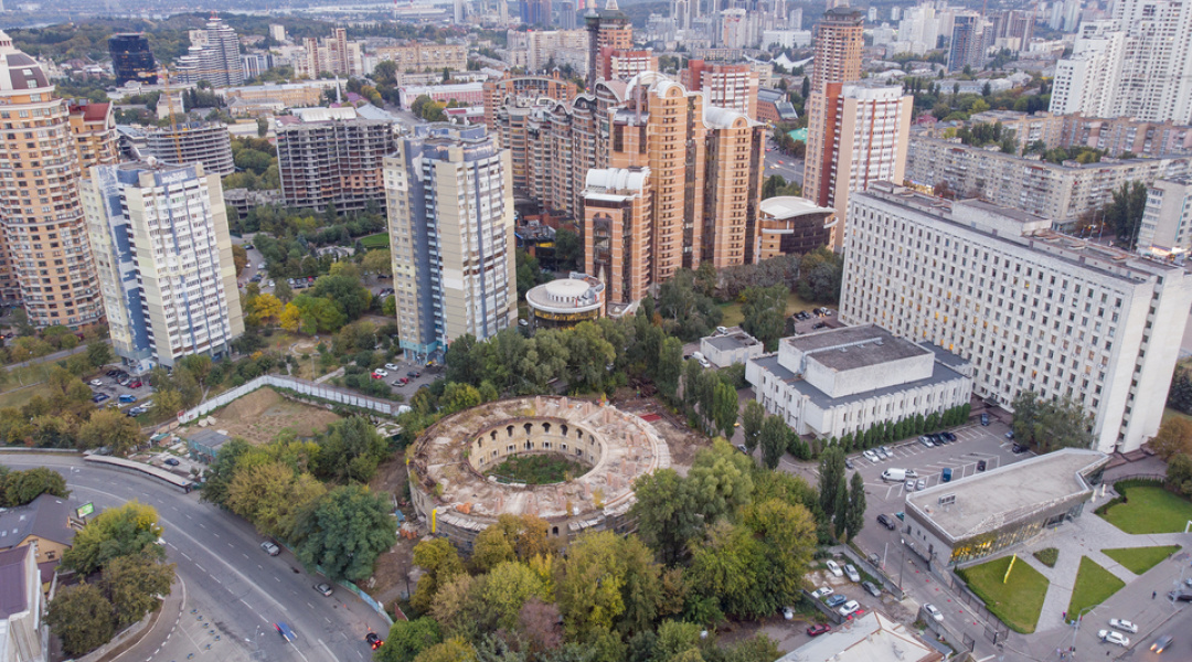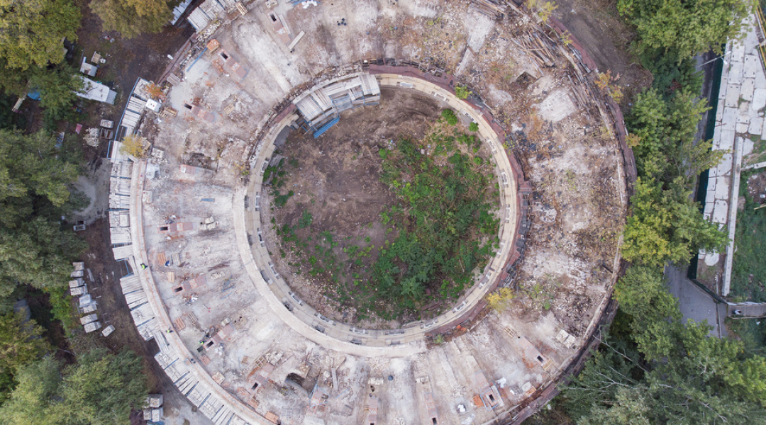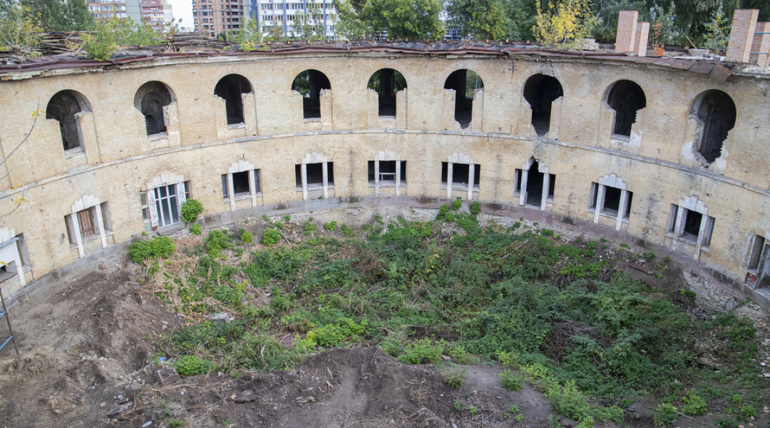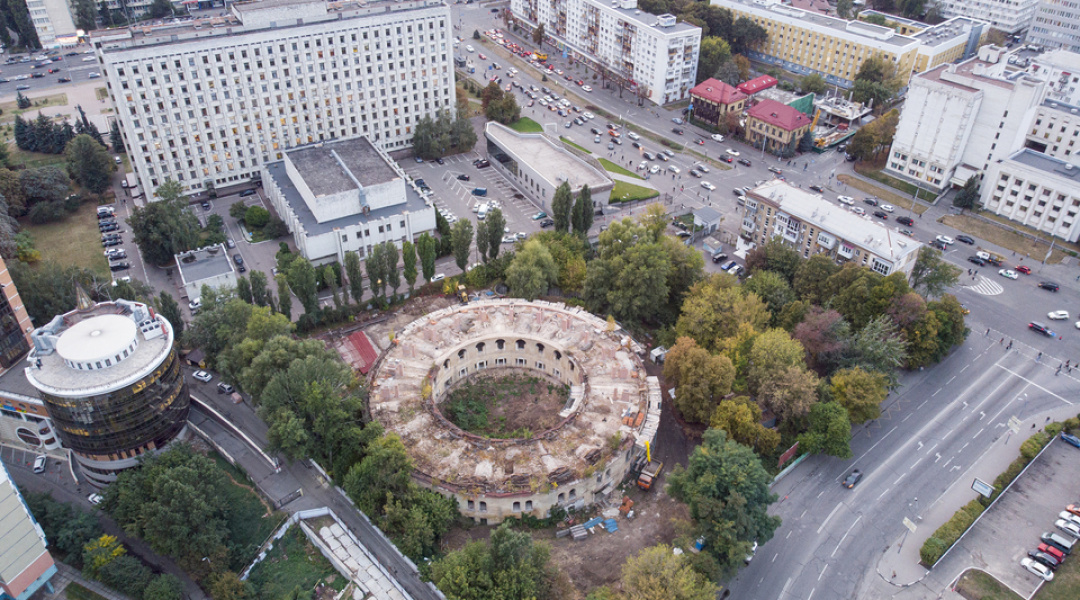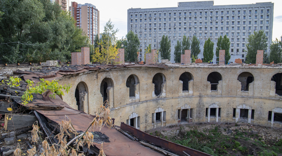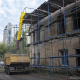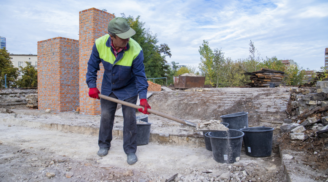 Нині тривають роботи з будівництва та перекладання верхньої частини зовнішньої стіни, на яку має спиратися конструкція даху.