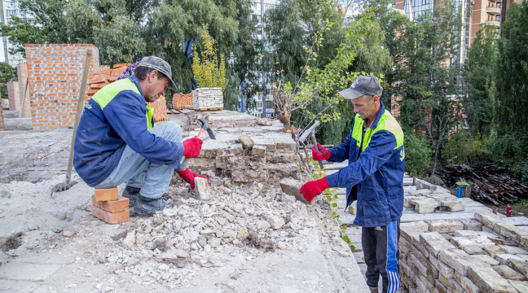 За словами заступника гендиректора музею, робітники перекладають аутентичну цеглу, а там, де вона зруйнована, використовують сучасні матеріали.