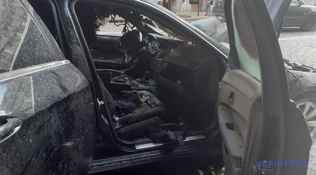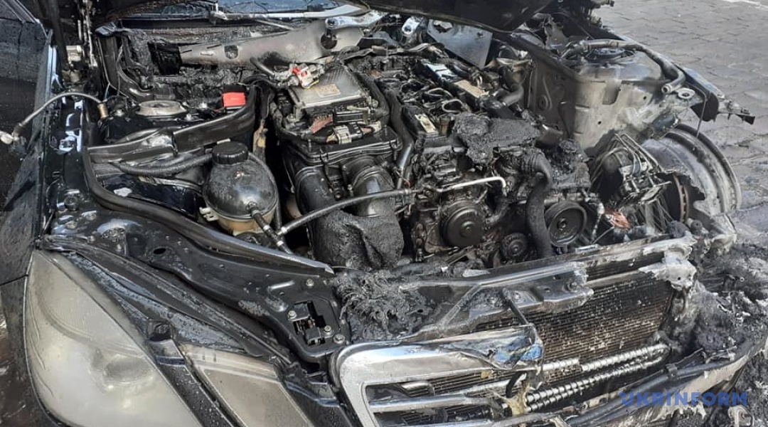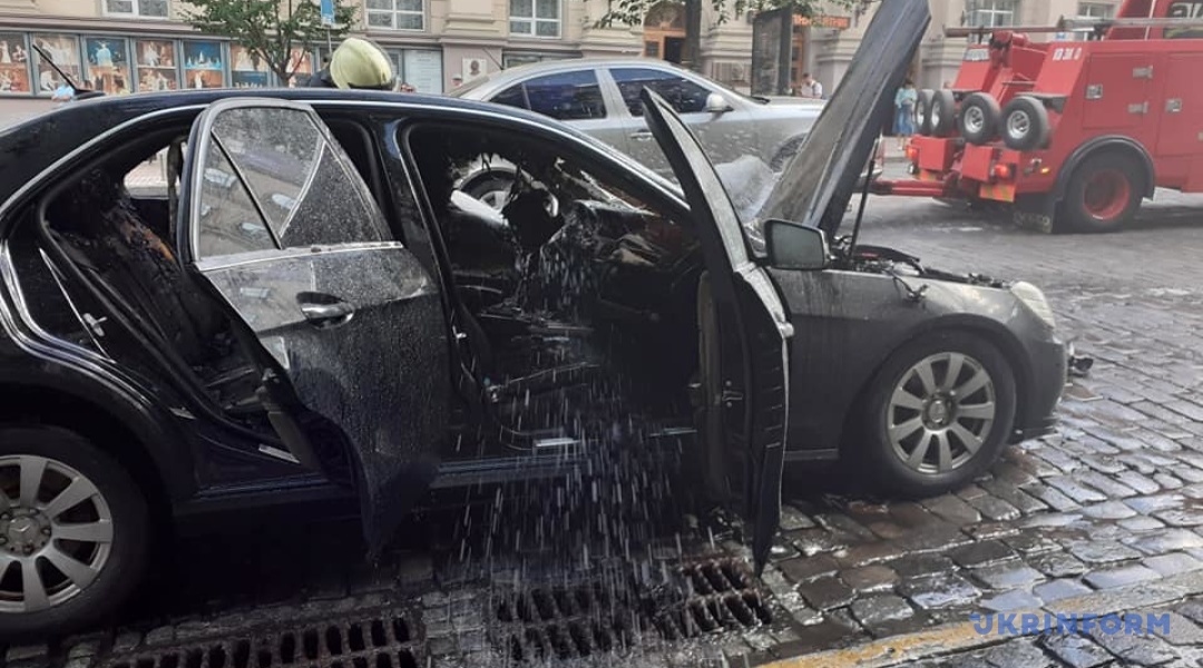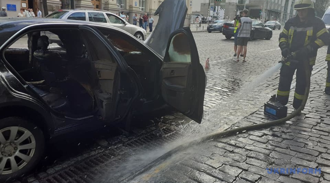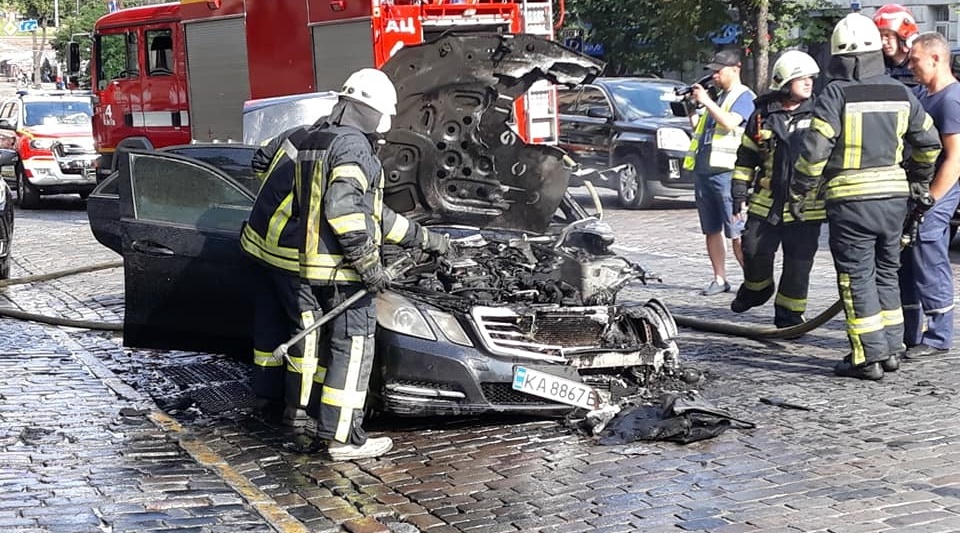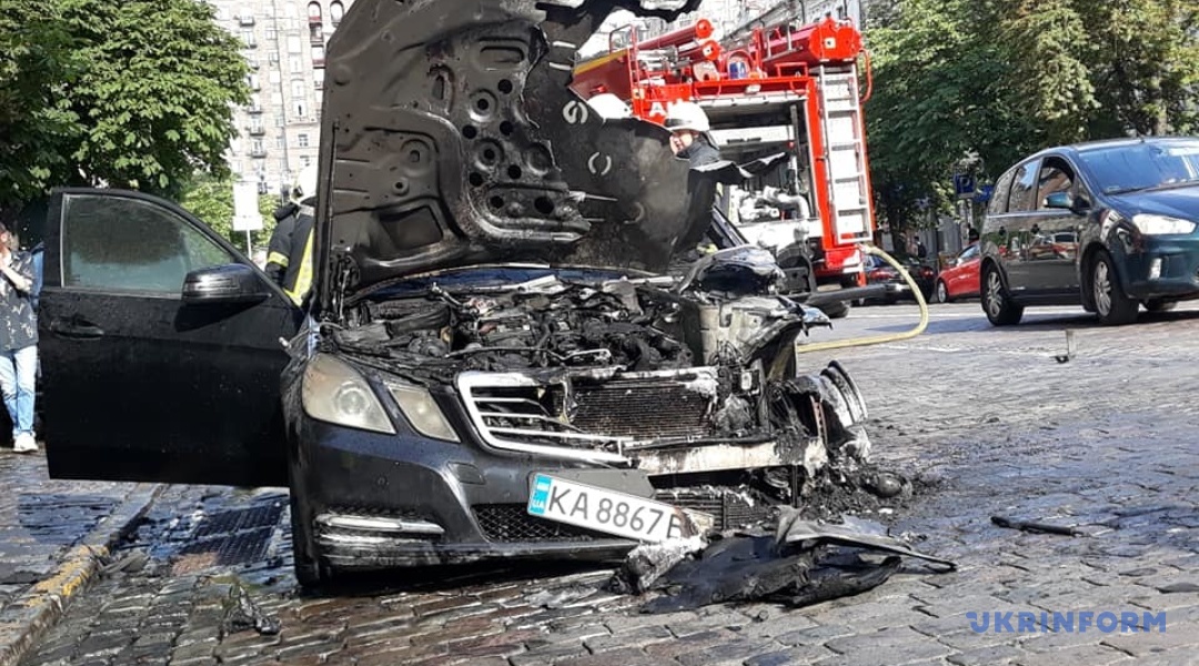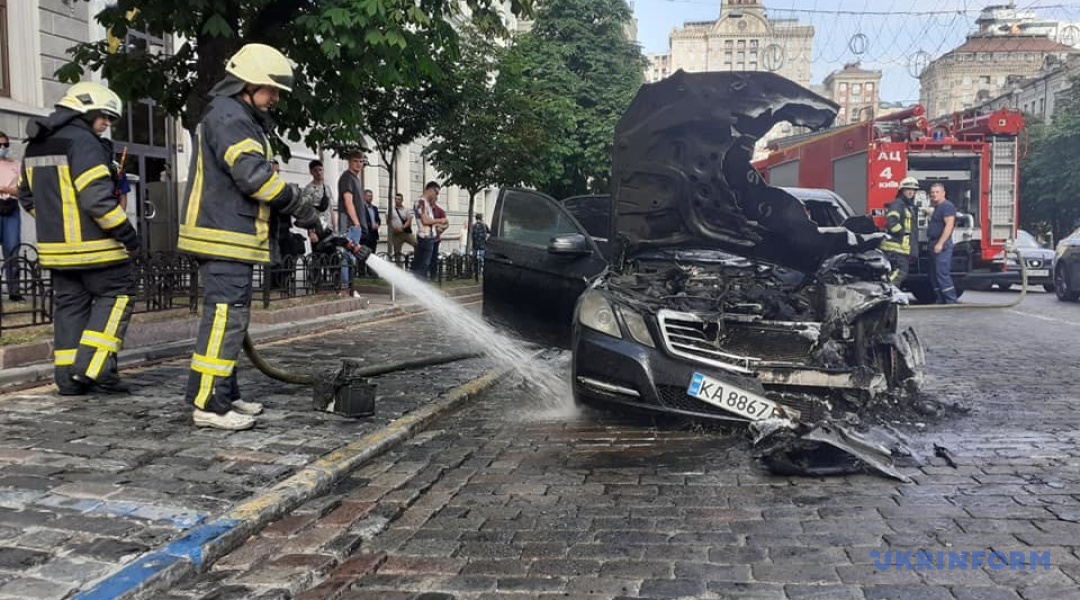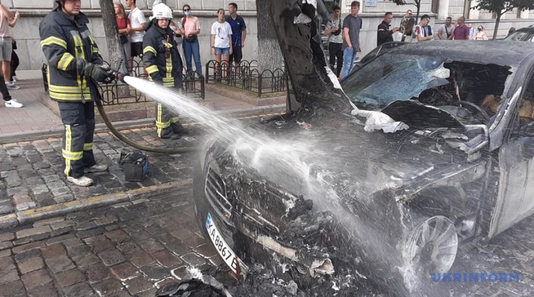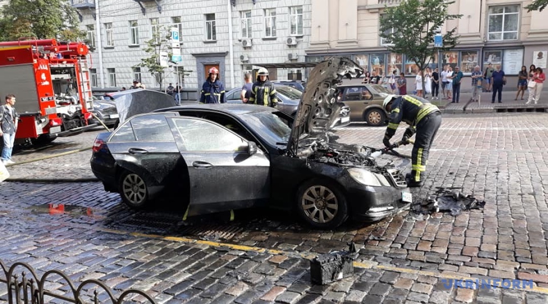 Під офісом Нафтогазу в Києві загорівся Mercedes