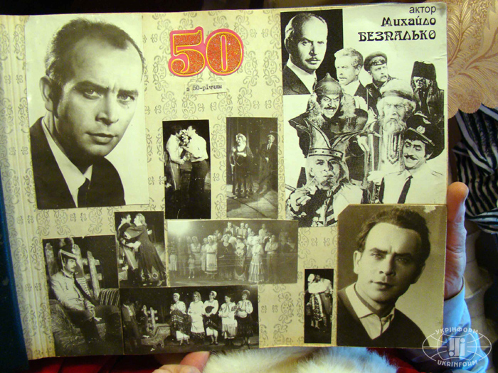Михайло Антонович тримає у руках товстезний альбом, у ньому – газетні публікації, фрагменти інтерв’ю, окремі світлини, пам’ятні дипломи, грамоти. Тут, ніби у калейдоскопі, постають театральні фрагменти з життя актора Михайла Безпалька. Серед сценічних образів чи найчастіше в очі кидаються фотографії, на яких мій співрозмовник – у новорічній шубі Діда Мороза.