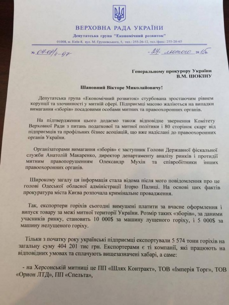 "Тільки з початку року українські підприємці експортували 5 574 тонн горіхів на загальну суму 404 201 тис. грн. Експортерами є ті компанії, які працюють на відповідних умовах та сплачують вищезазначені хабарі", - запевнив він.