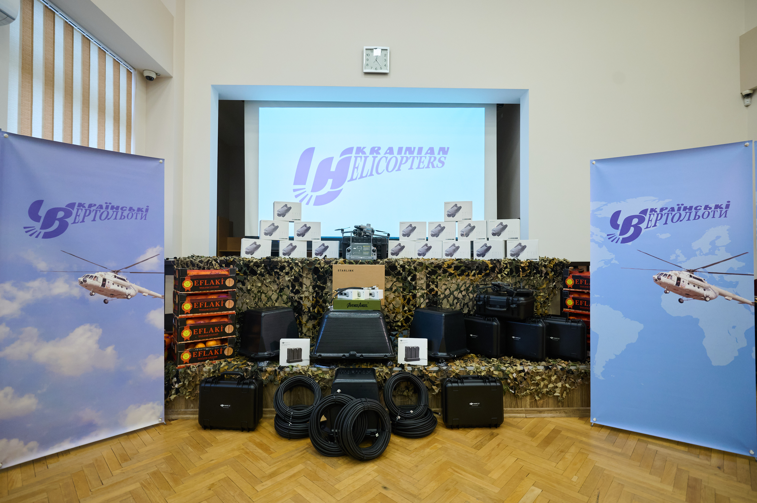 Як повідомили в авіакомпанії, лише за кілька днів до цього — на минулому тижні — співробітники повернулися з Дніпропетровщини, куди доправили фуру з 5-ма квадроциклами, термінали супутникового інтернету та детектори дронів для потреб ще двох бойових частин. В актовому залі показали відео-звернення від тих двох частин, які отримували квадроцикли, шини, термінали супутникового інтернету та детектор дронів.