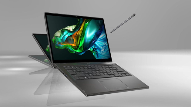 - Aspire Spin 14 — трансформер із поворотним екраном на 360° та стилусом у комплекті. Intel Core Ultra 5 із вбудованим NPU розвантажує процесор від фонових обчислень — шумозаглушення, розпізнавання — і вивільняє ресурси. LPDDR5X на 6400 МГц — найшвидша пам’ять у лінійці, а 18 годин автономності дозволяють працювати два дні без пошуку розетки.