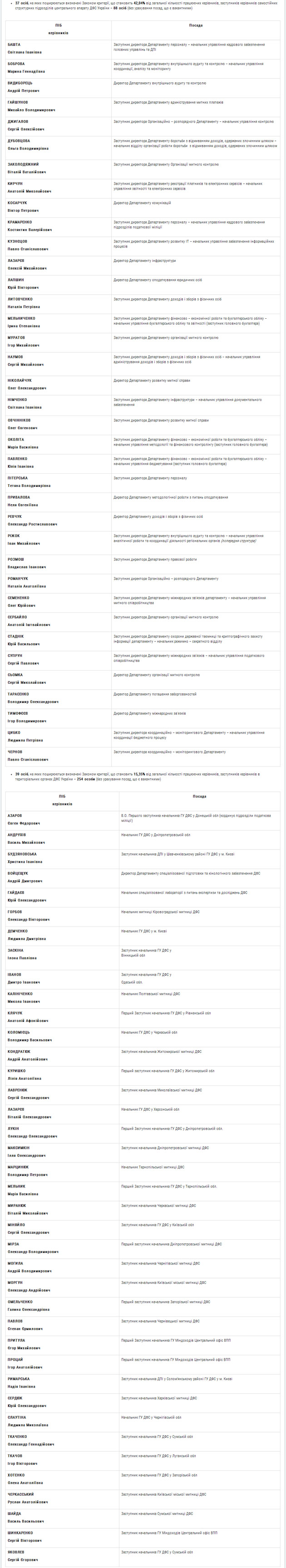 Люстровані керівники Фіскальної служби. Список Мін'юсту