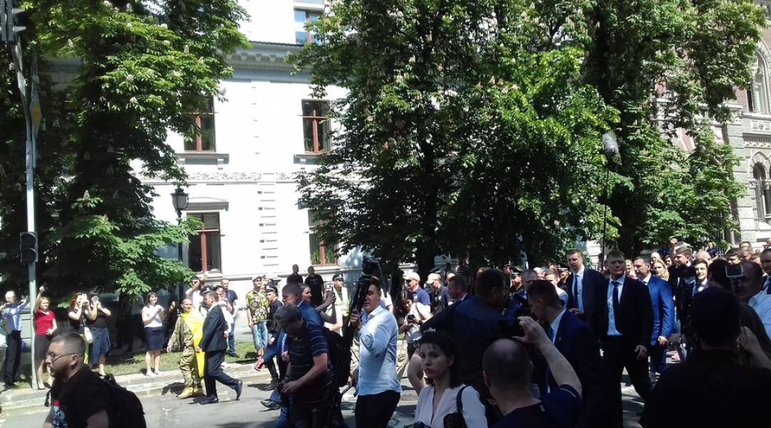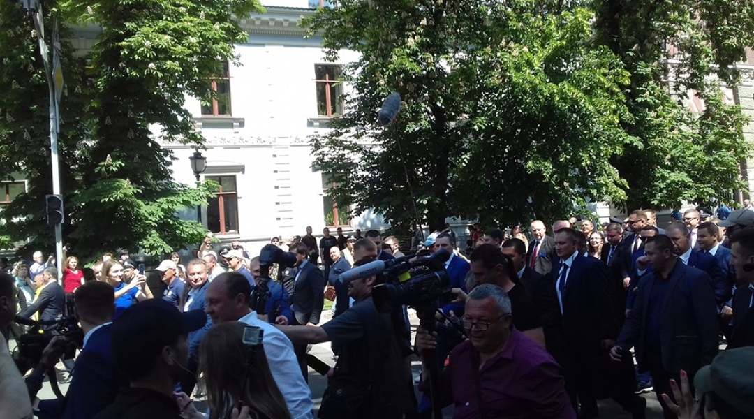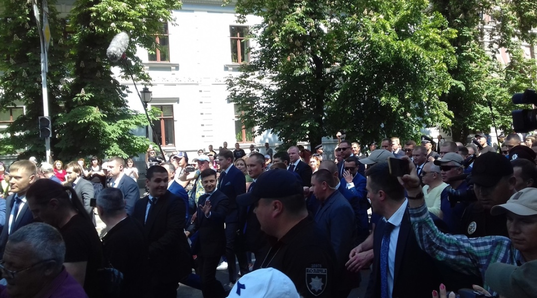 Зеленський у супроводі близько сотні людей пройшов від Маріїнського палацу до Адміністрації Президента. Люди на вулиці зустрічали його вітаннями.