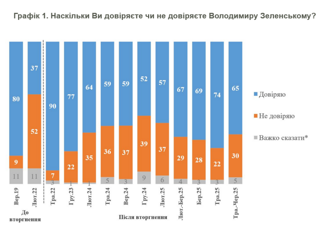 Зеленському довіряють 65% українців