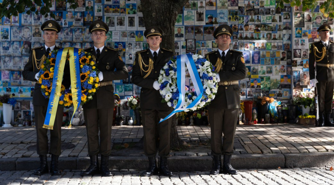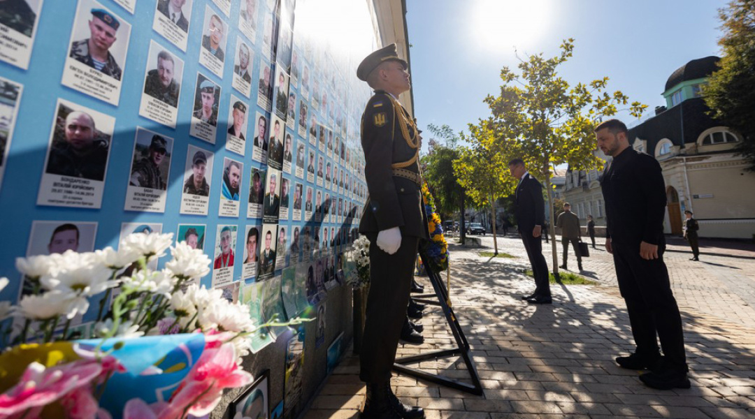 Президент України Володимир Зеленський і Президент Фінляндії Александр Стубб біля Стіни памʼяті в Києві вшанували українських захисників і захисниць, які віддали свої життя заради України.