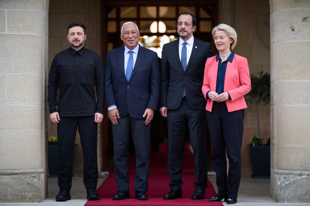 Президент України Володимир Зеленський своєю чергою наголосив, що обговорив із президентом Кіпру Нікосом Христодулідісом, президентом Євроради Антоніу Коштою і президенткою Єврокомісії Урсулою фон дер Ляєн вступ України до ЄС, посилення ППО, спільне виробництво зброї та репараційну позику.