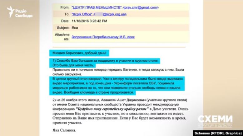 Як повідомлялося, журналісти «Схем» опублікували матеріал, у якому оприлюднили відомості про те, що наукова консультантка ВРУ Яна Салміна роками системно отримувала російські державні кошти на захист прав росіян в Україні через громадські організації, однією із яких керує досі.