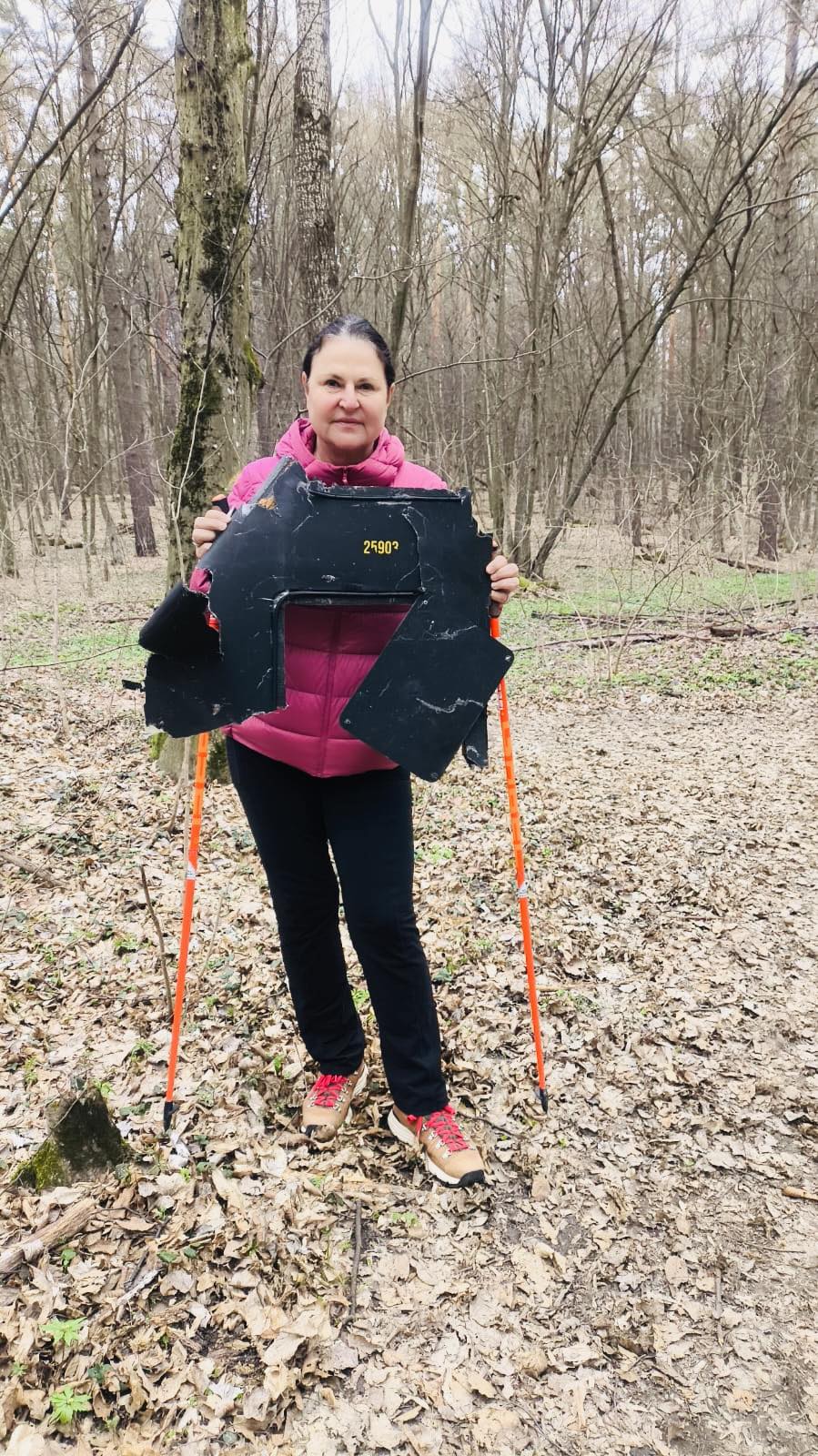 "Декілька днів тому я вирушила на ранкову прогулянку лісом у Києві. Я люблю ліси. Я звикла знаходити там гриби чи перші весняні квіти. Цього разу я знайшла великий фрагмент дрона Shahed", - йдеться у дописі.