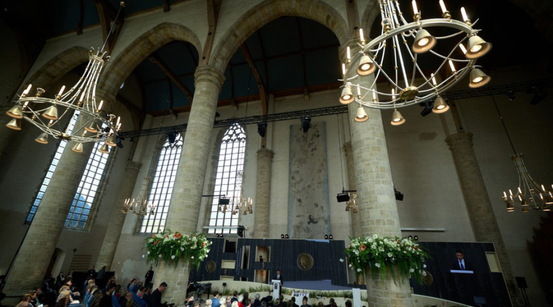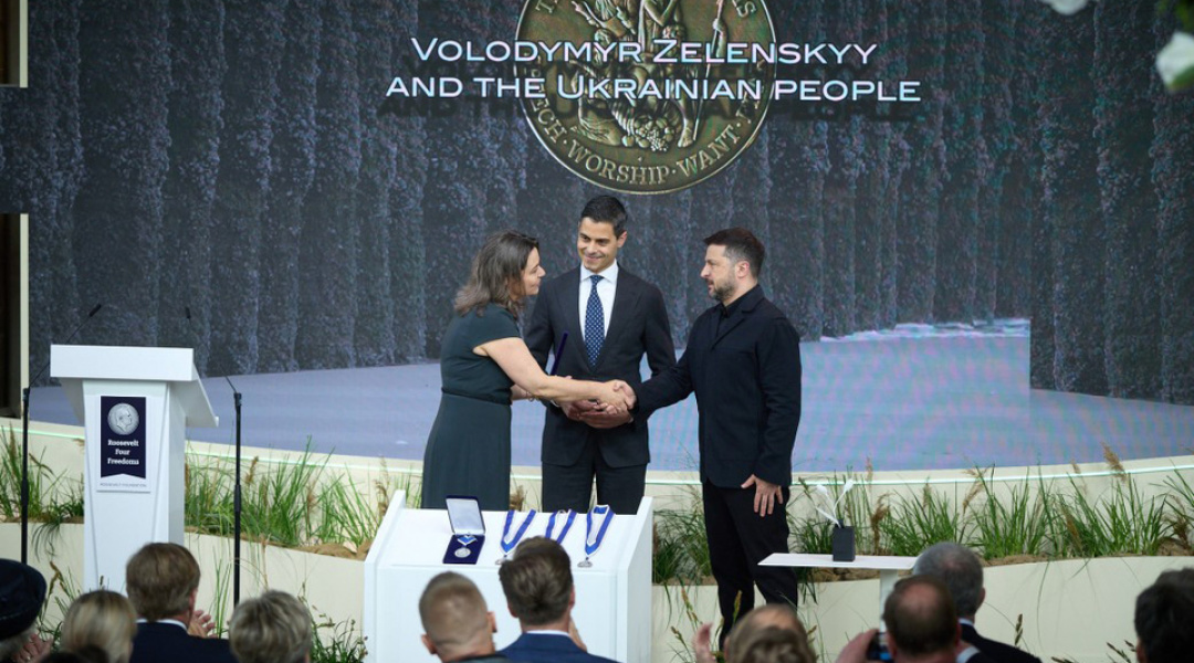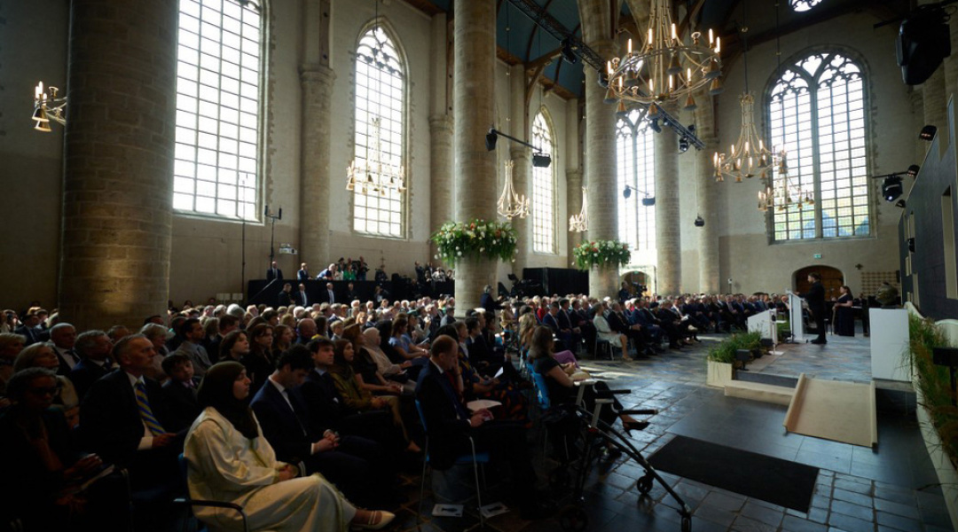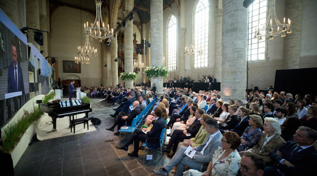 Як повідомляв Укрінформ, Президент України Володимир Зеленський сьогодні перебуває з візитом у Нідерландах. Зокрема, глава держави взяв участь у церемонії вручення міжнародної премії “Чотири свободи”, лавреатами якої цьогоріч стали Володимир Зеленський і народ України.