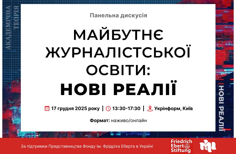 17 грудня о 13:30 відбудеться панельна дискусія на тему: «Майбутнє журналістської освіти: нові реалії».