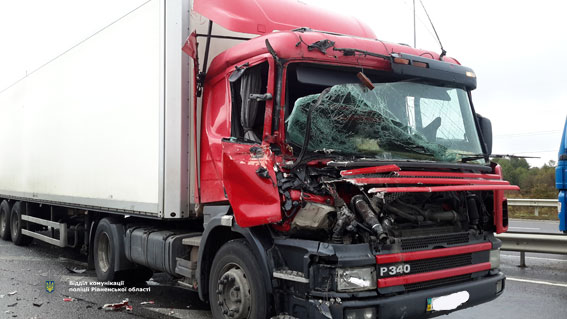 У результаті зіткнення водій автомобіля «SCANIA» травмував ногу, однак від госпіталізації відмовився.