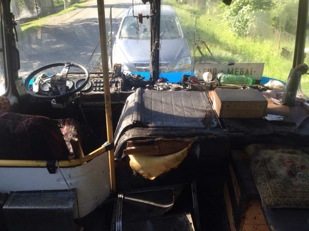При гасінні пожежі водій отримав незначні опікові травми шиї, кистей рук та вушних раковин. Вогнем також пошкоджені передня панель, лобове скло та закопчений салон.