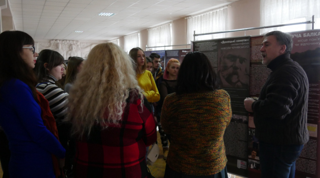 У свою чергу, Карєтніков провів для студентів імпровізовану екскурсію, під час якої акцентував увагу на подіях, що відбувались у Донецькій області протягом останніх ста років, і про які занадто мало інформації винесено на широкий загал. Так, він розповів молоді про діяльність підпільників ОУН у Маріуполі, Сталіно та інших містах, національно-визвольний рух на початку 20 сторіччя, робочі повстання за часів радянської влади та інші цікаві історії, які допомагають краще розуміти історичні процеси, які проходили у цьому регіоні.