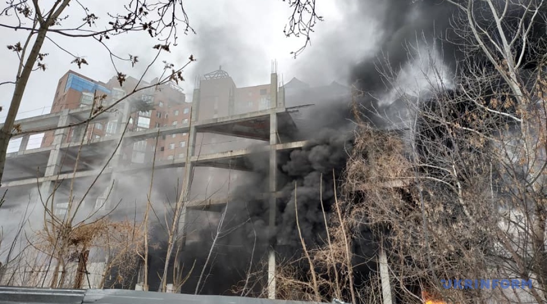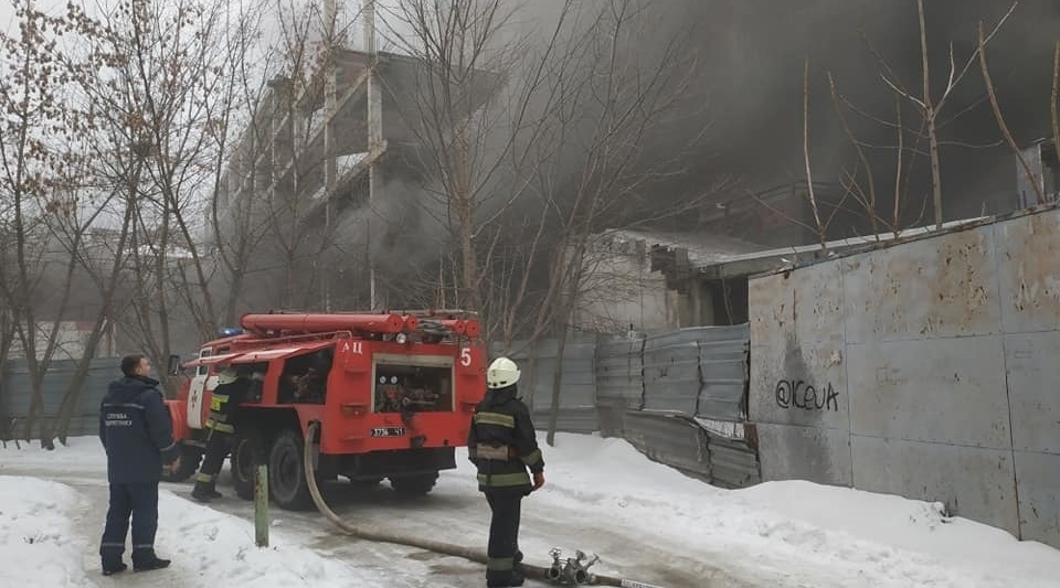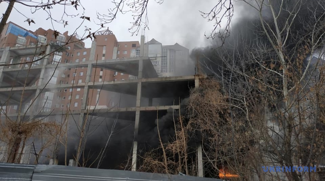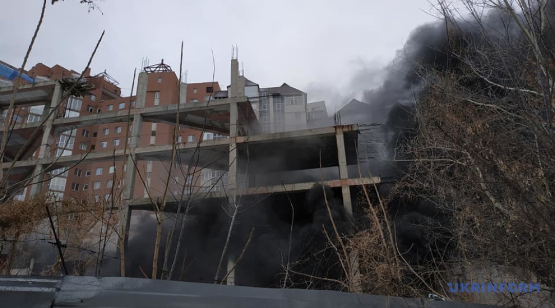 У Дніпрі в недобудованій будівлі на бульварі Кучеревського поблизу «Арени-Дніпро» безпритульні влаштували пожежу.
