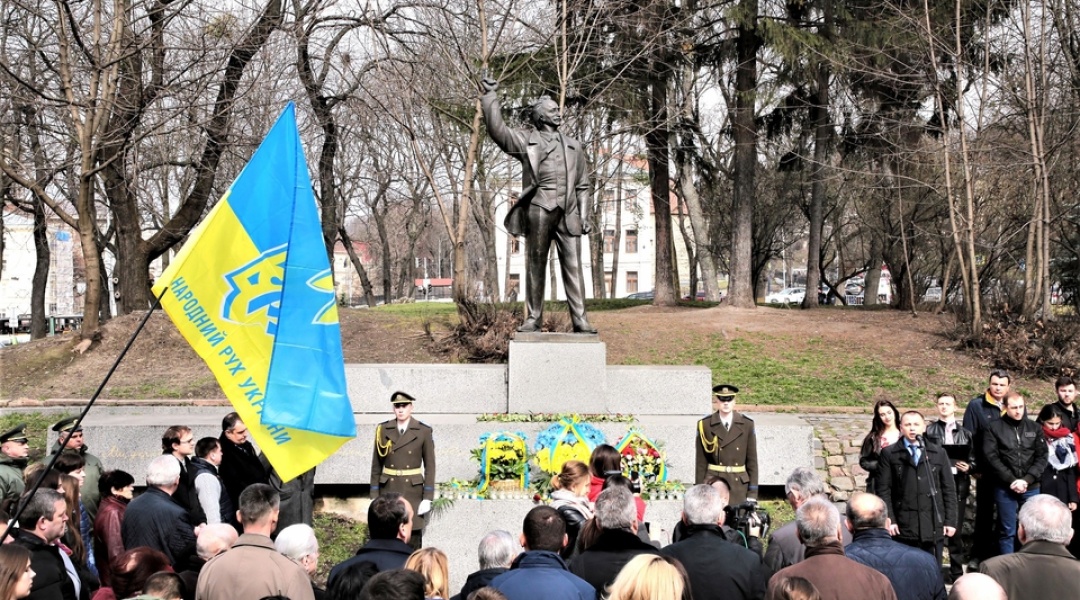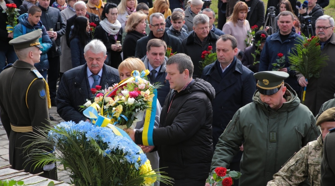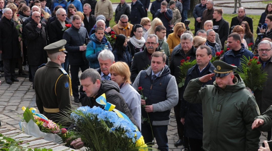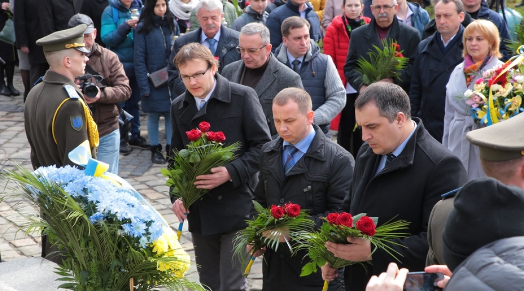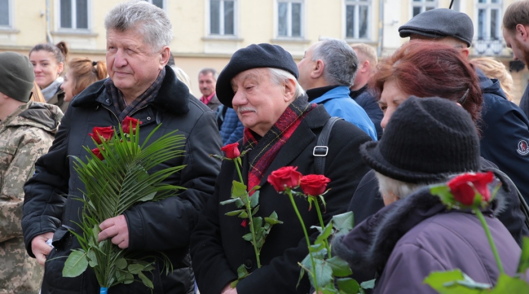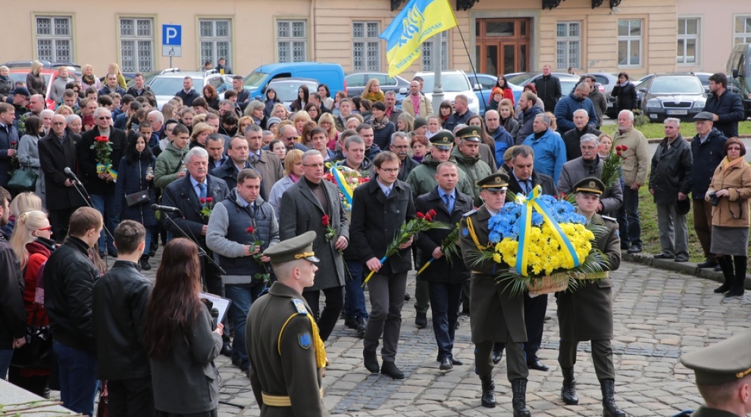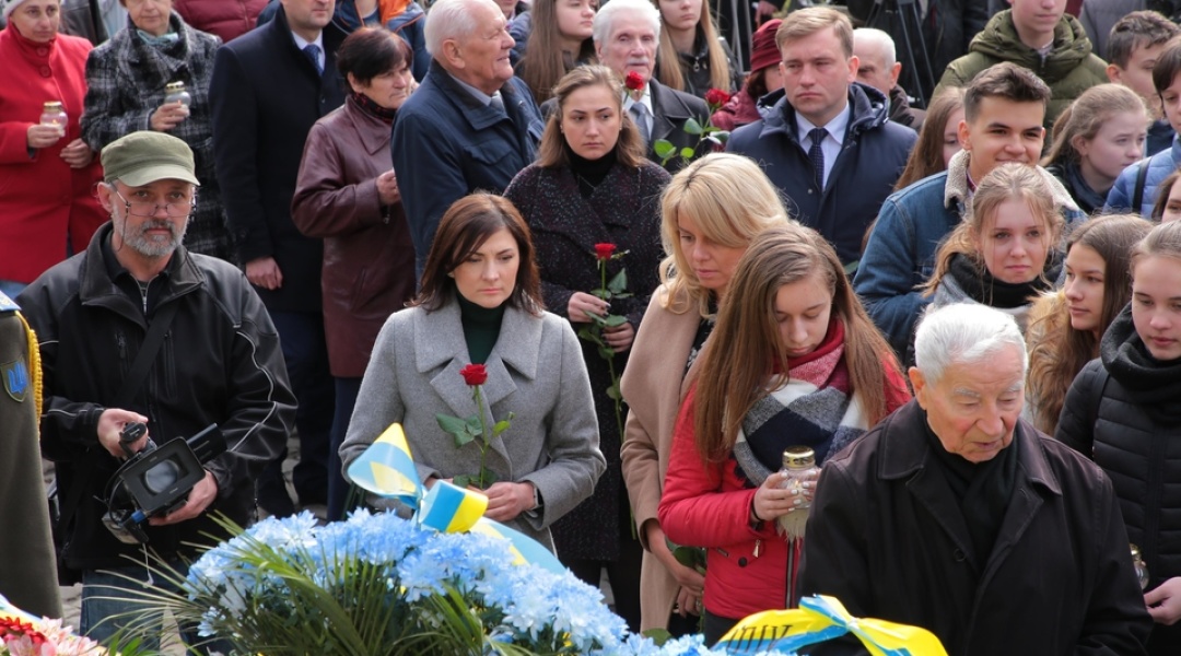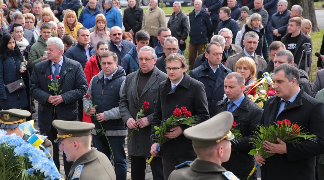 Урочистості відбулись біля пам`ятника Чорноволу в обласному центрі. Сюди прийшли представники влади, духовенства, громадськості.