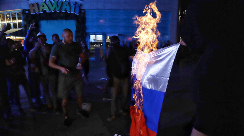 В Одесі на мітингу проти концерту фанатки Путіна спалили прапор РФ