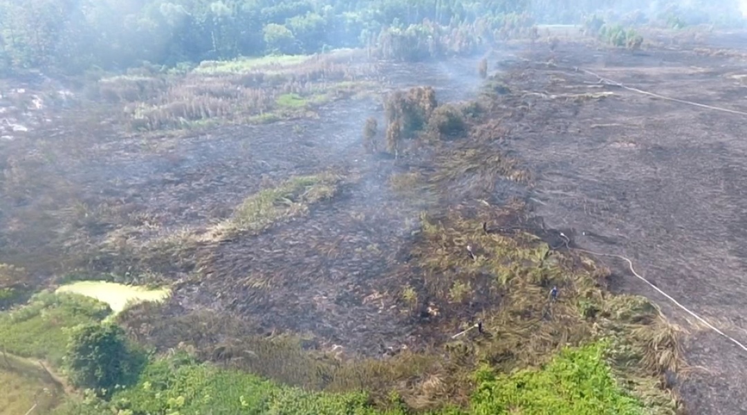 На місці рятувальники встановили, що виникло загорання трав’яного настилу на площі 2 га та лісової підстилки на площі 0,5 га, що призвело до торф’яної пожежі на площі 2 га.