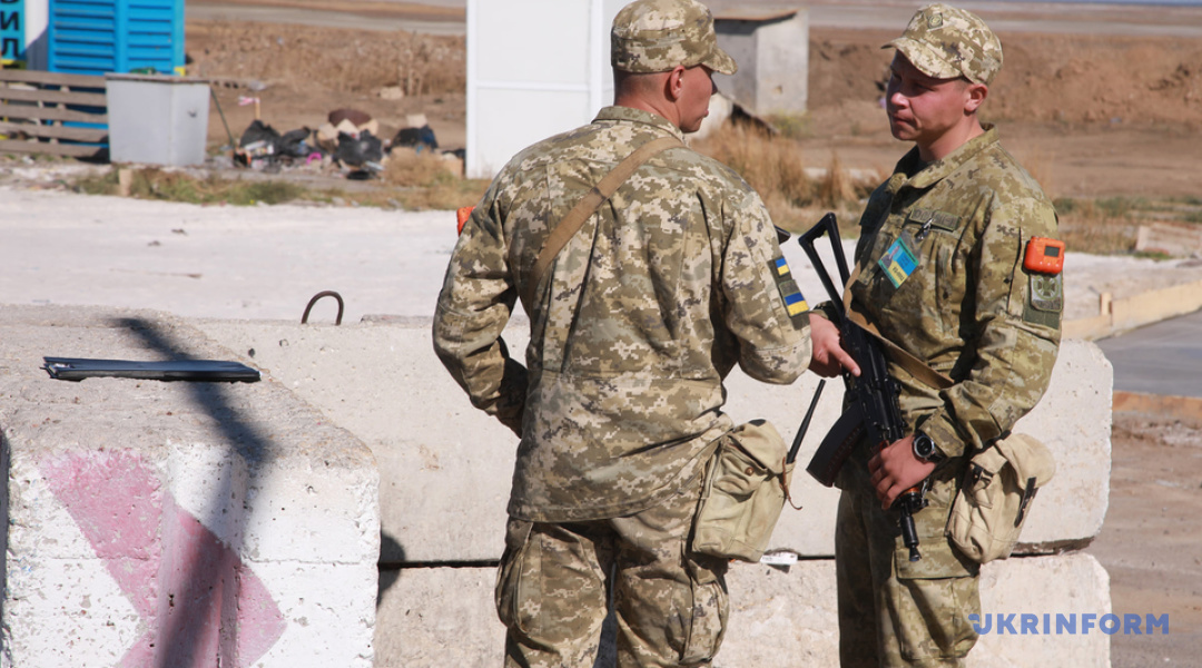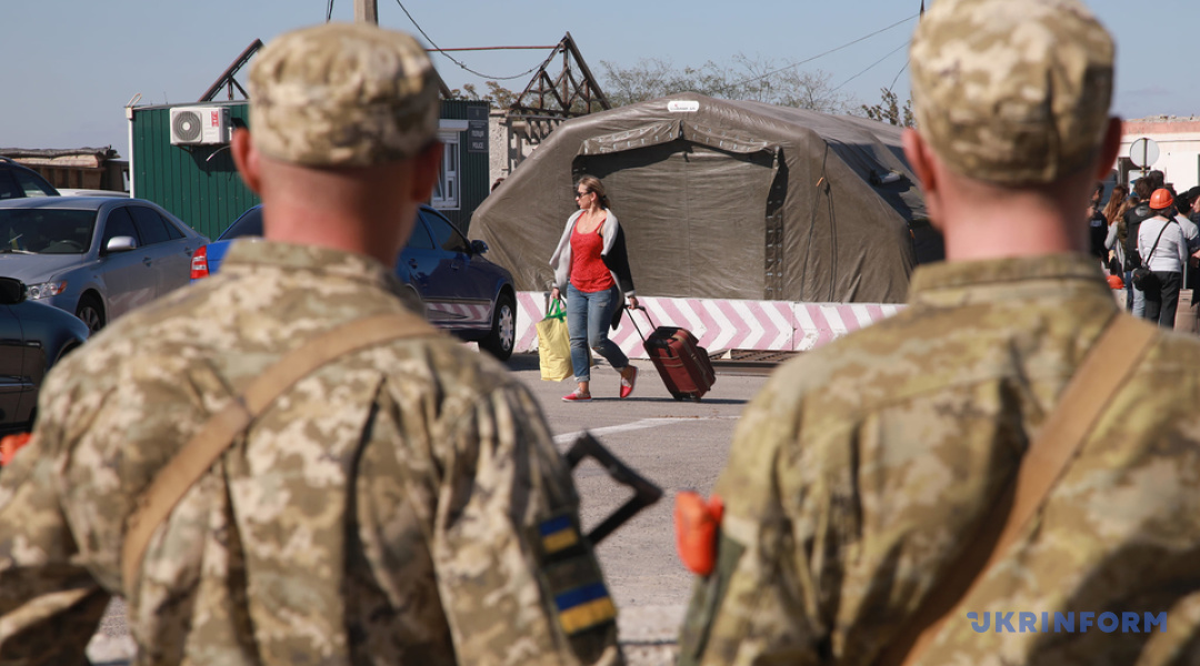 З боку окупованого Криму і в зворотному напрямку йдуть пішки люди з сумками, валізами, їдуть автівки. На бетонних плитах сидить жінка. Вона дуже втомлена і тихенько плаче. Розповідає, що повертається з Криму – у неї там діти. І на материковій Україні у неї теж діти. Отак і доводиться їздити, а вона інвалід, тому їй важко пішки долати шлях між постом окупантів, що розташований у Криму, і нашим постом на материку, а потім ще до автобуса.