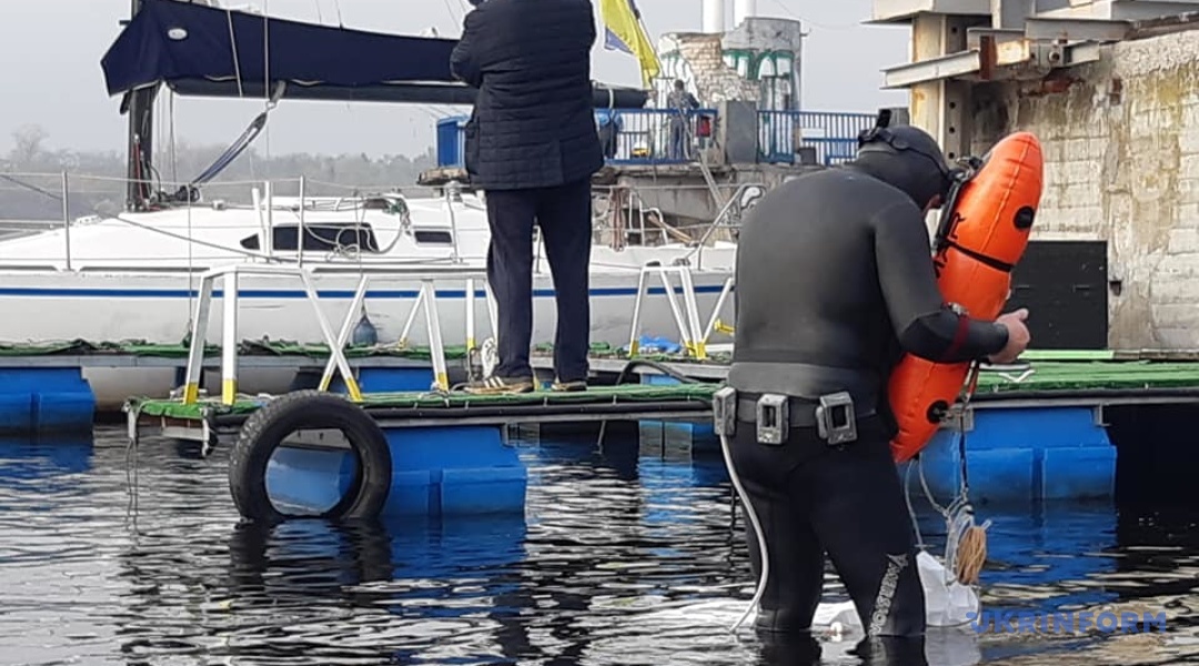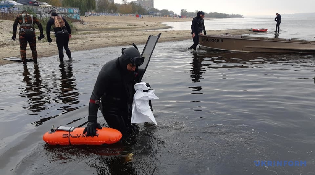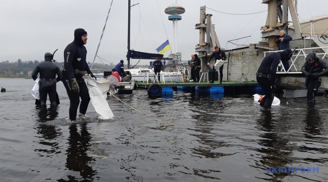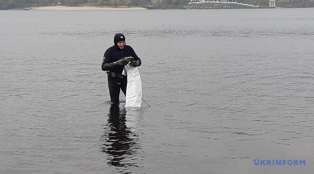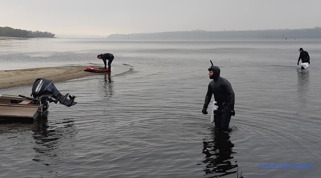 Чистити Дніпро прийшли 20 "підводників". Температура води в Дніпрі - 13-15 градусів, температура повітря приблизно така ж.