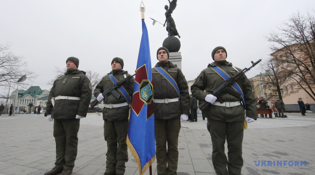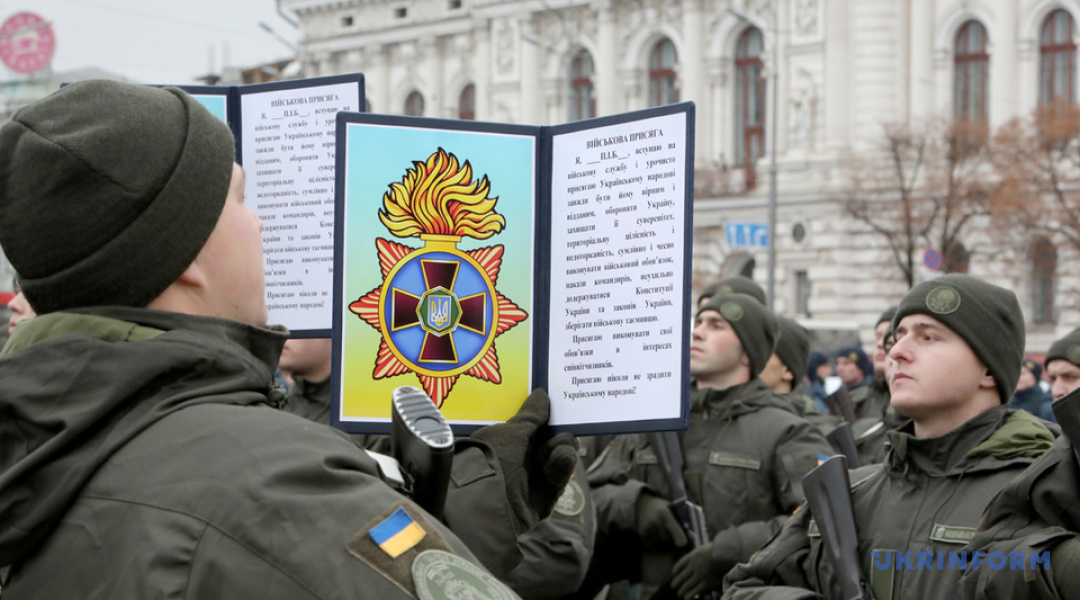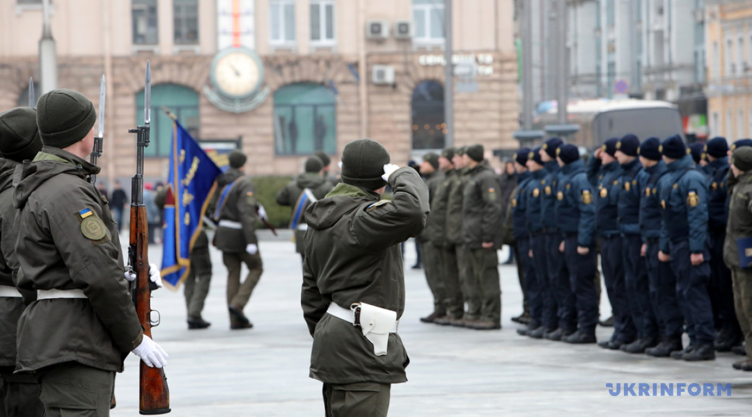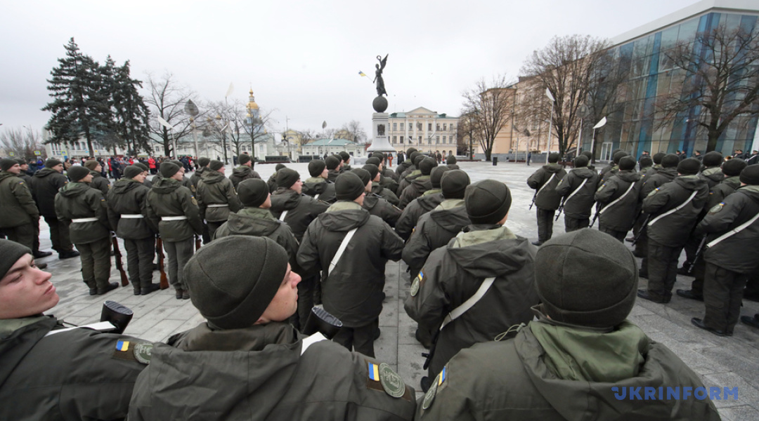 "Вітаю всіх із цим значним днем у житті справжніх чоловіків. Служіть чесно, захищайте свою країну так, як захищали вас ваші батьки", - зазначив, відкриваючи церемонію на площі Конституції, начальник Східного територіального управління Нацгвардії України полковник Олег Сахон.