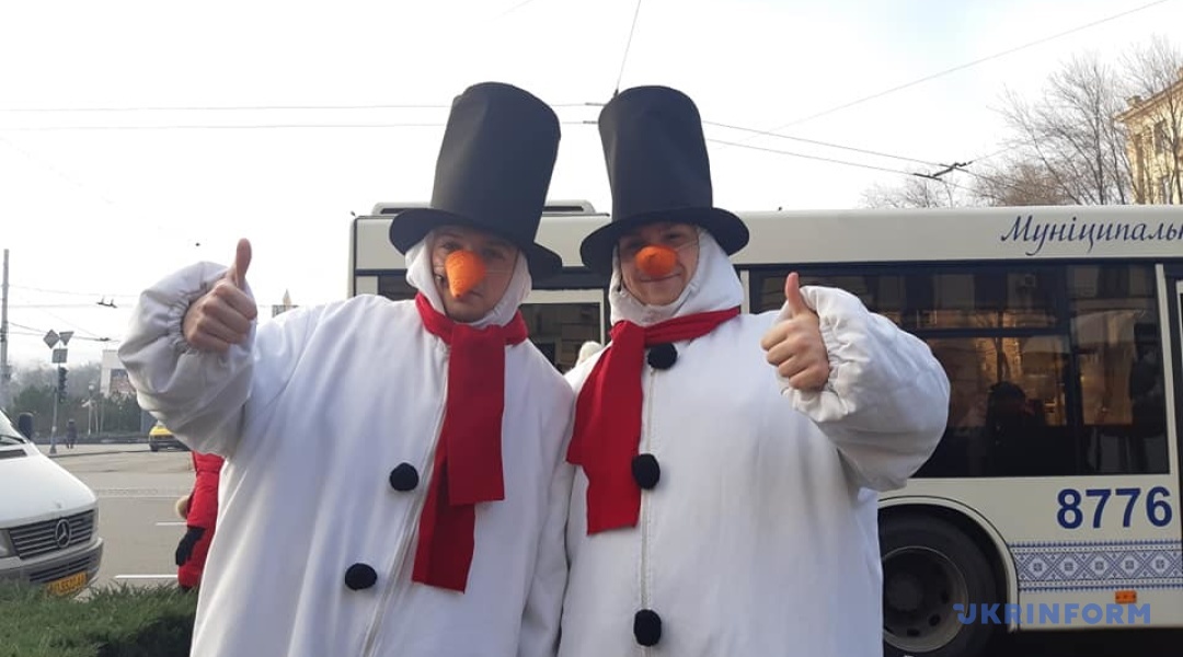 У цей день з самого ранку на площі перед Запорізькою міською радою збираються 70 помічників Святого Миколая і звідти вони вирушили у різні райони міста аби привітати дітей з особливими потребами.