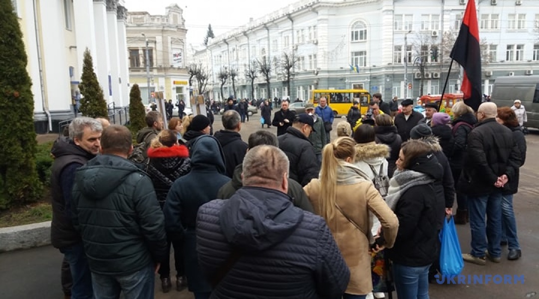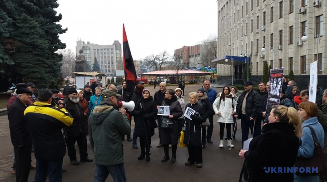 Акція проходила біля пам’ятного знаку Героям Небесної Сотні, що поруч із адміністративною будівлею облради і облдержадмінінстрації.
