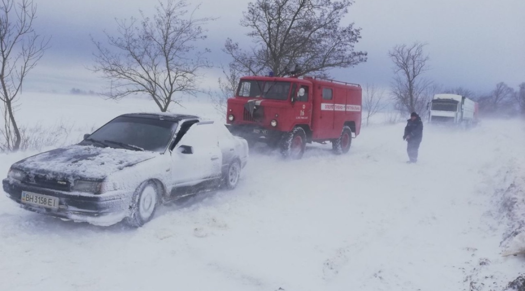 “Станом на 15:00 6 лютого рятувальники продовжують ліквідовувати наслідки негоди. Так, на автошляху Сарата - Кулевча рятувальники вилучили два автомобілі, які знесло на узбіччя через сніговий замет. За допомогою буксировочного тросу працівники ДСНС транспортували автомобілі на проїжджу частину дороги”, - йдеться у повідомленні.