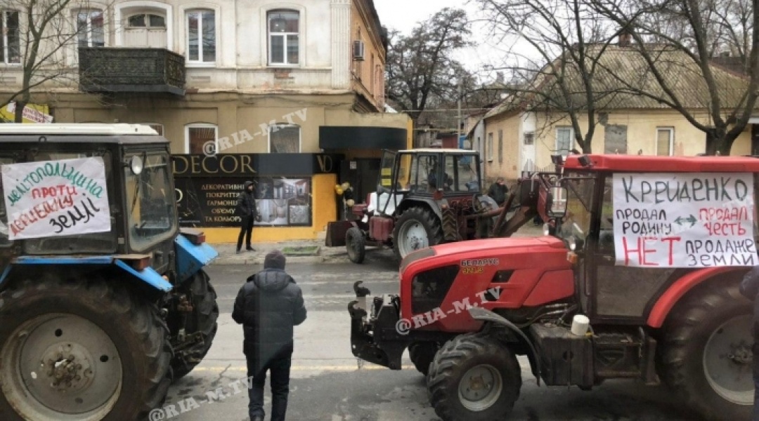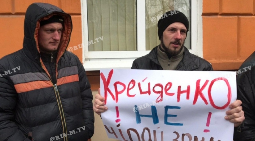 Зазначимо, біля будівлі міськради Крейденка чекали кілька десятків аграріїв. Вони тримали в руках плакати з написами: «Ганьба, Крейденко, руки геть від землі», «Мелітопольщіна проти дерибану землі» тощо.