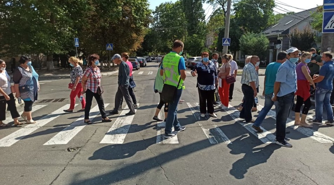 Вони ходять по пішохідному переходу, не пропускаючи транспорт, повідомляє кореспондент Укрінформу.